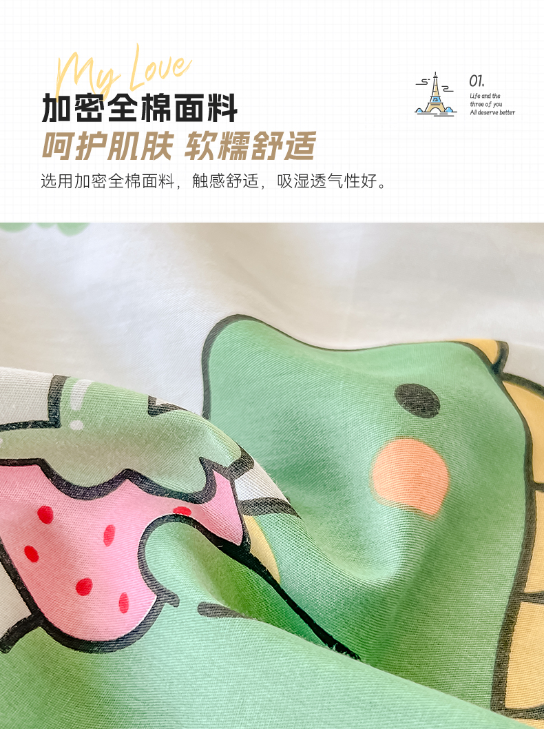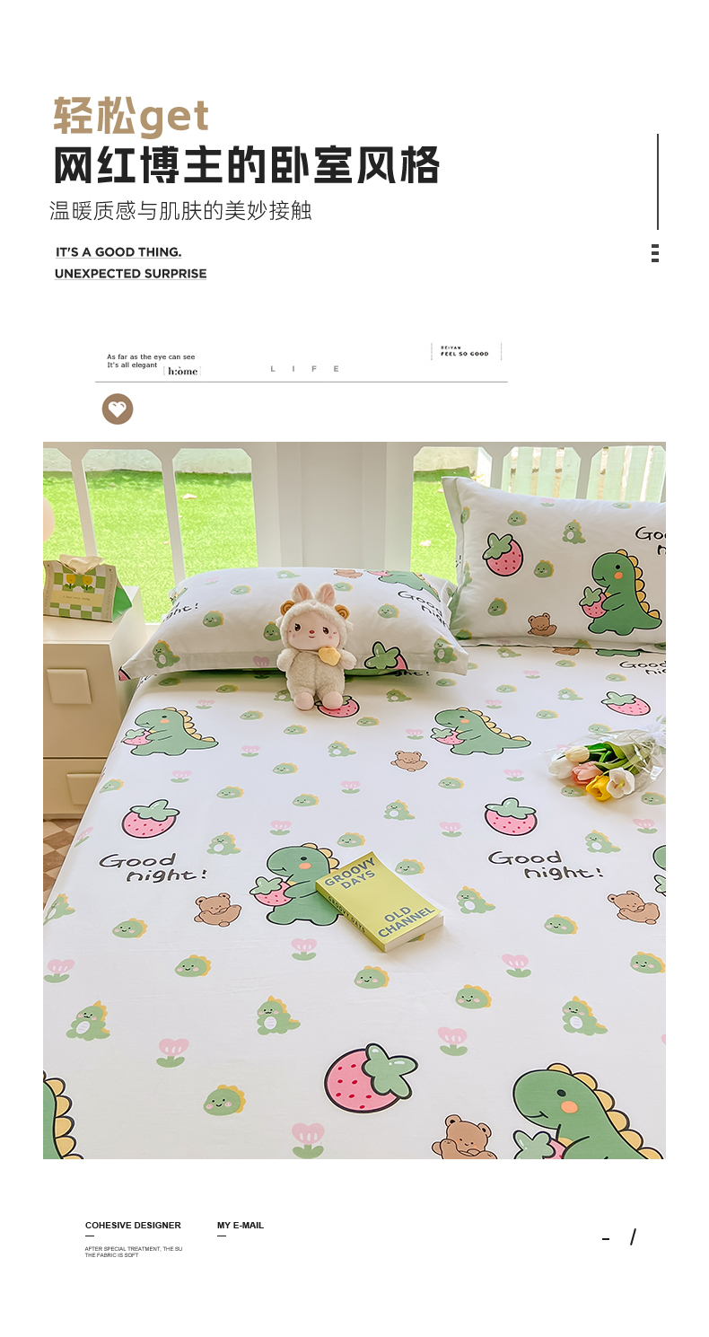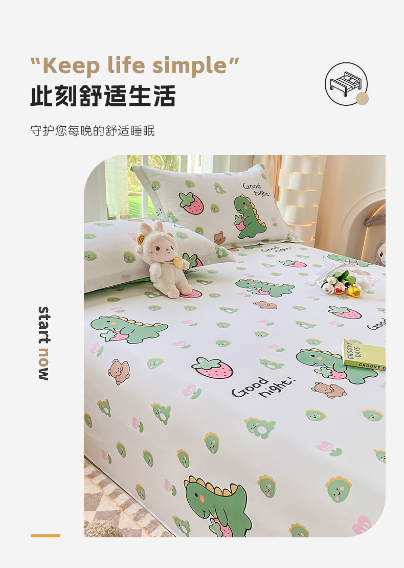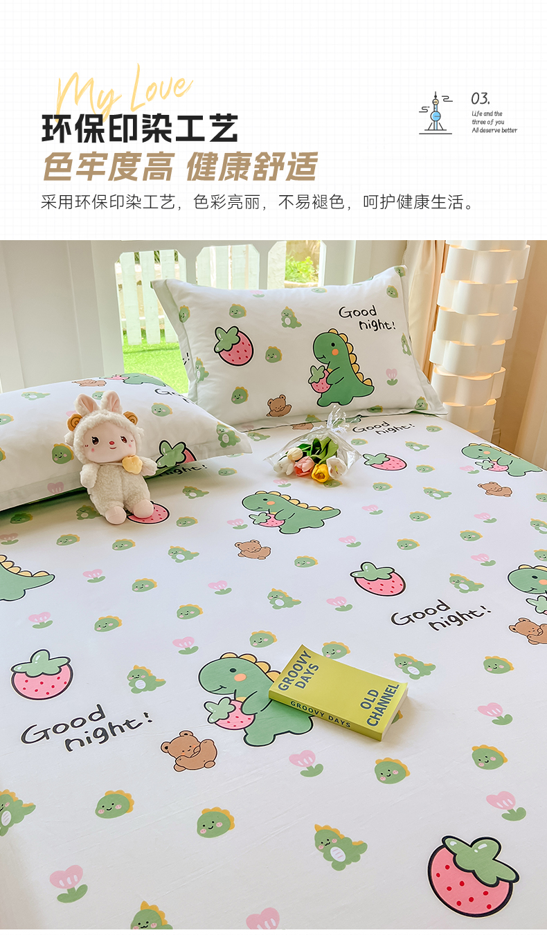 绵庭家纺 2023新款12868系列全棉小清新印花单床单 恐龙贝贝