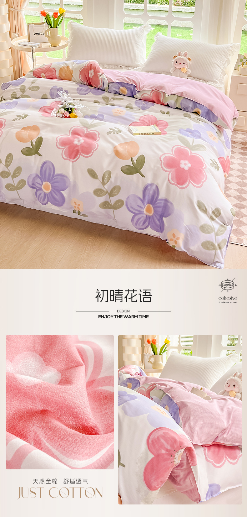 绵庭家纺 2023新款12868系列全棉小清新印花单被套 初晴花语