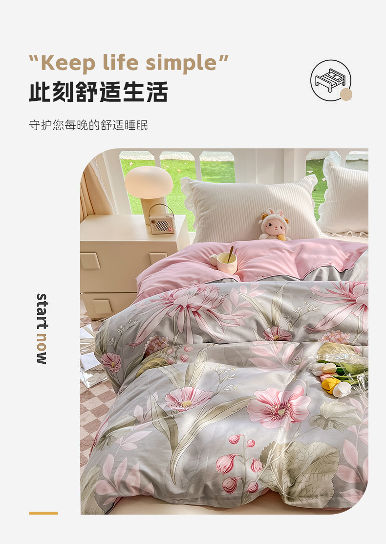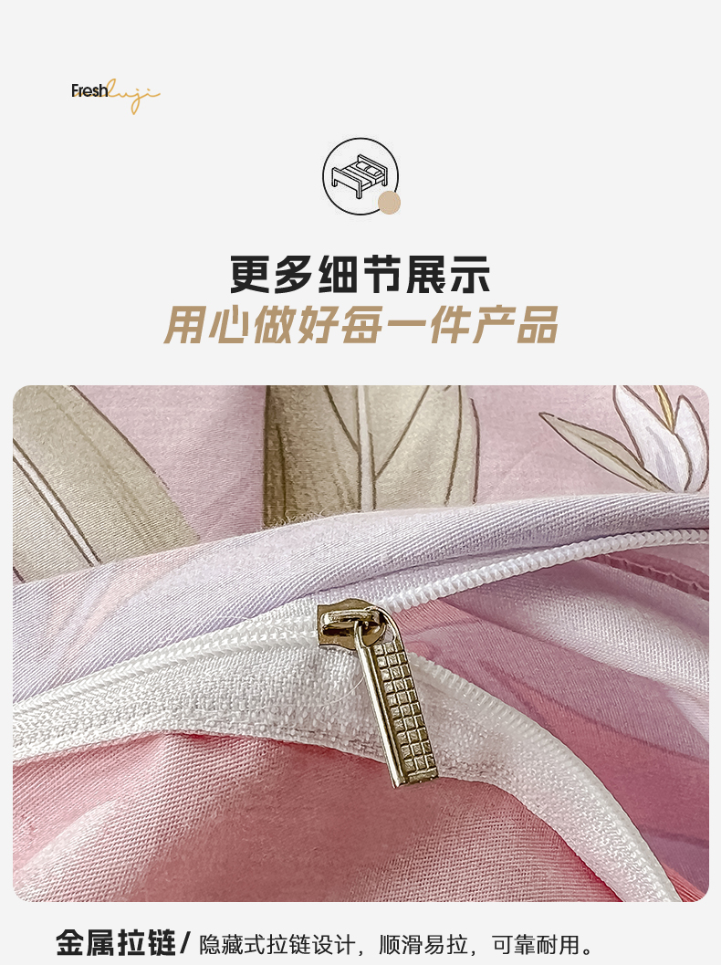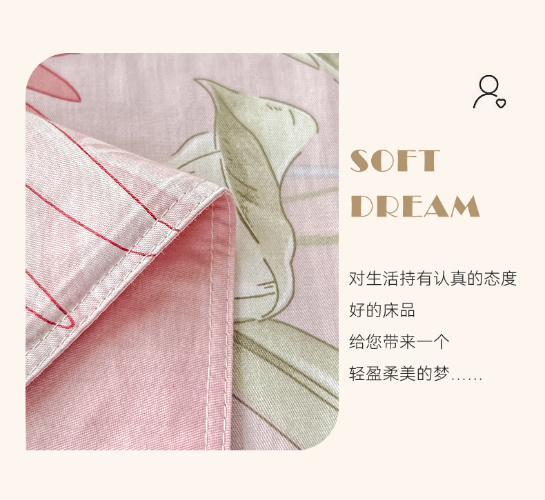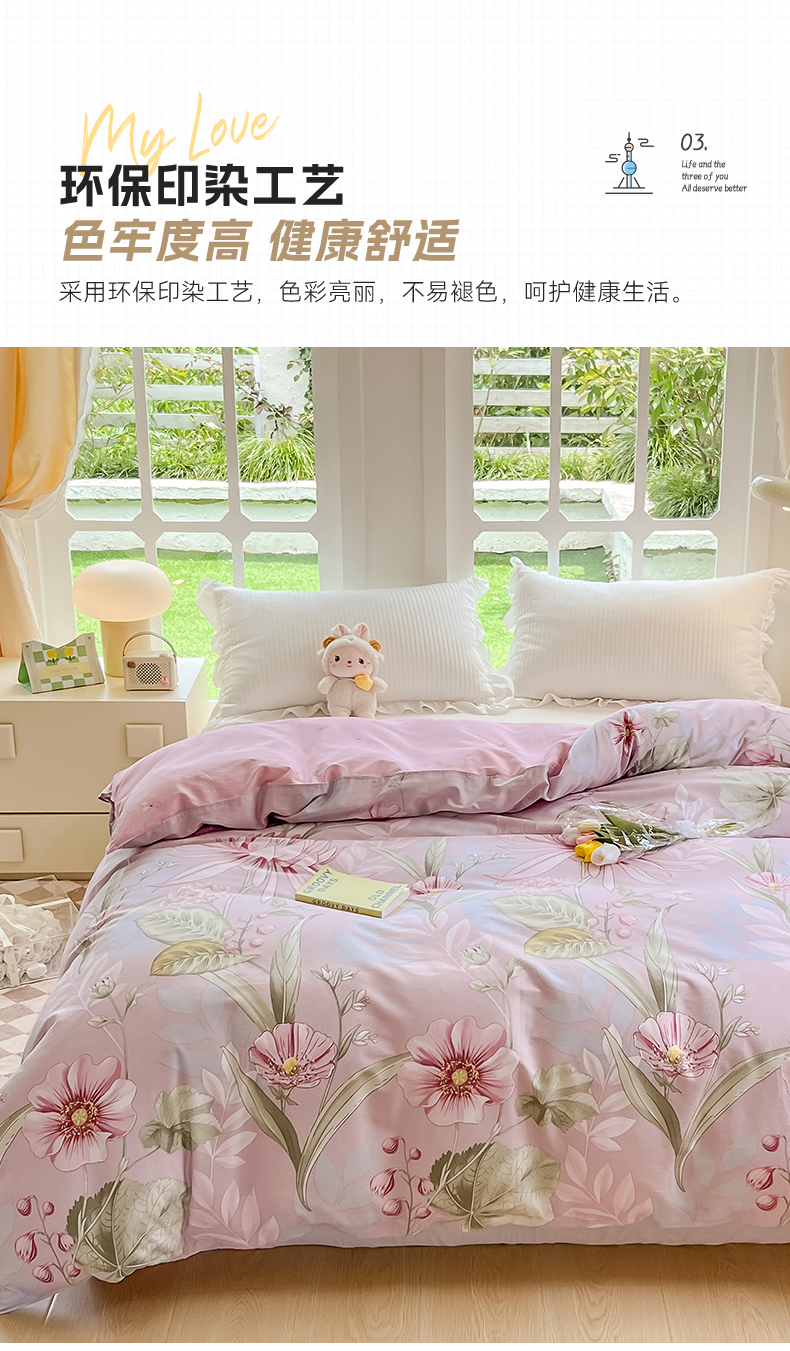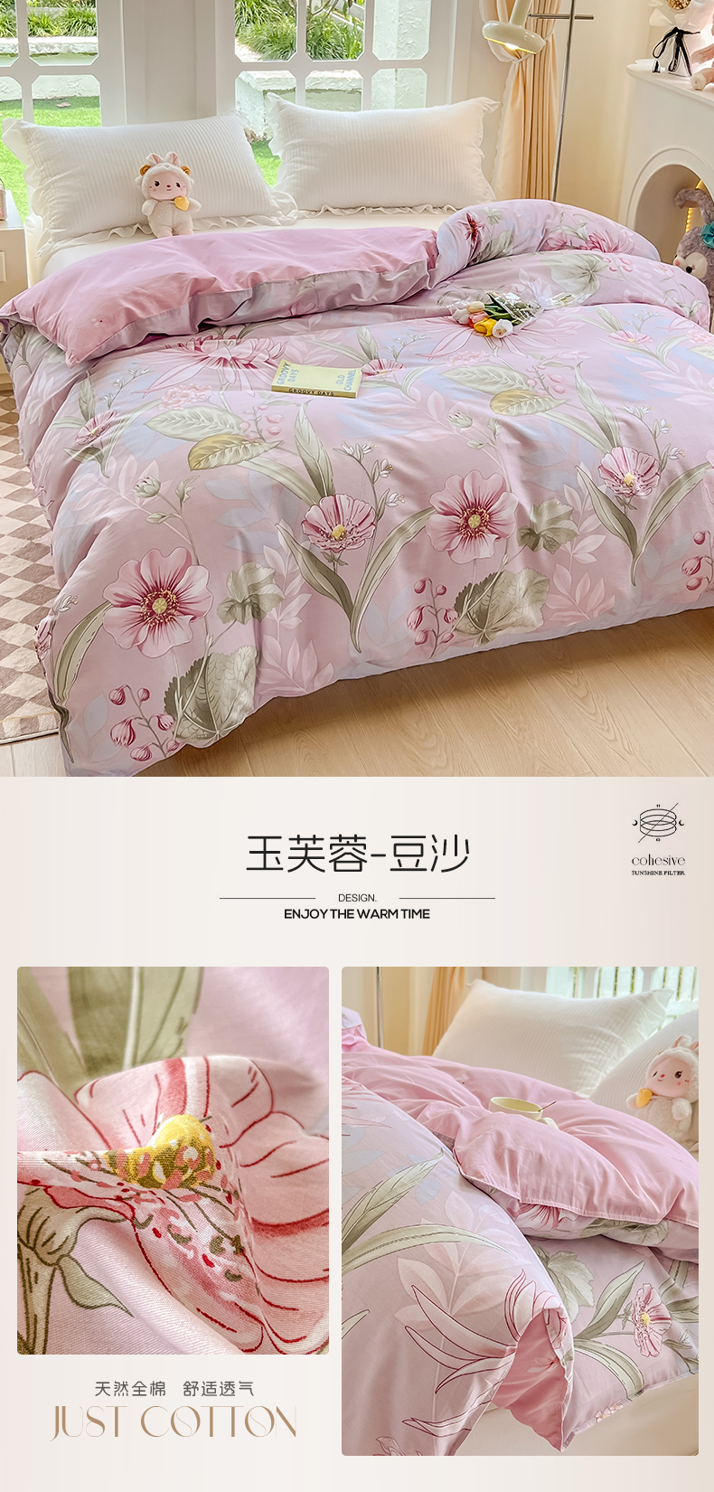 绵庭家纺 2023新款12868系列全棉小清新印花单被套 玉芙蓉 豆沙
