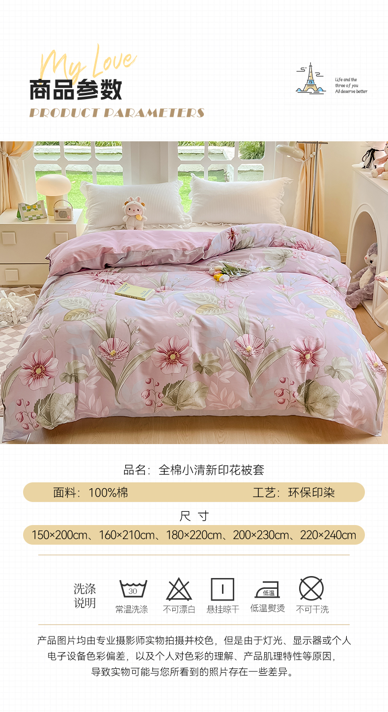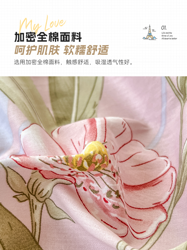 商品名称:绵庭家纺 2023新款12868系列全棉小清新印花单被套 玉芙蓉 豆沙