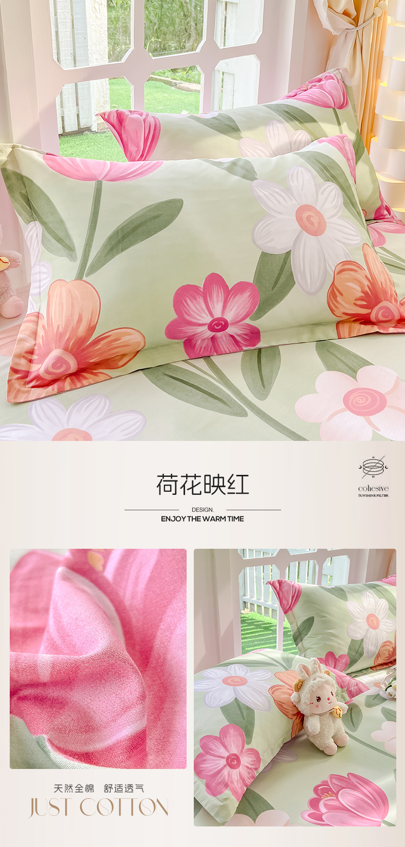 绵庭家纺 2023新款12868系列全棉小清新印花单枕套 荷花映红