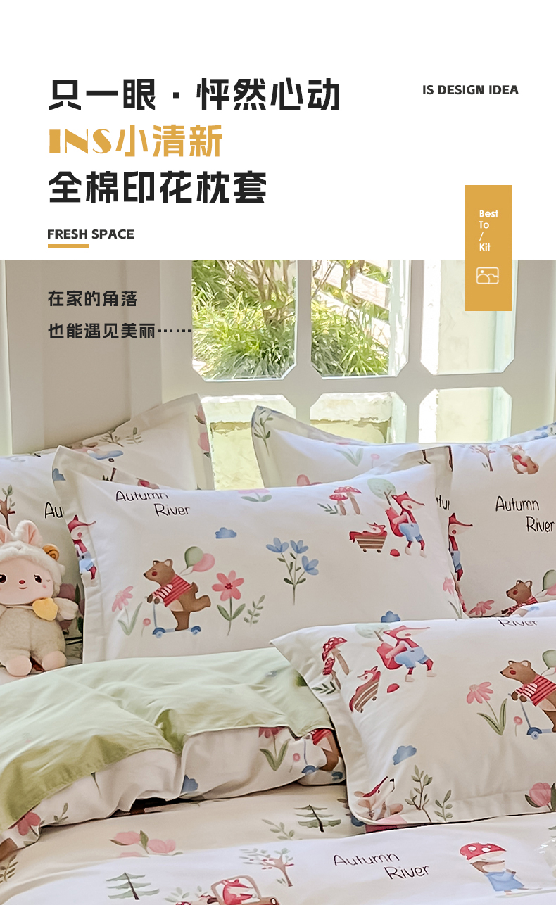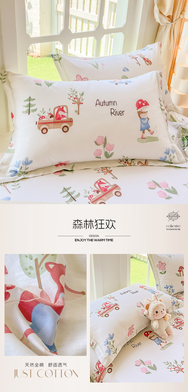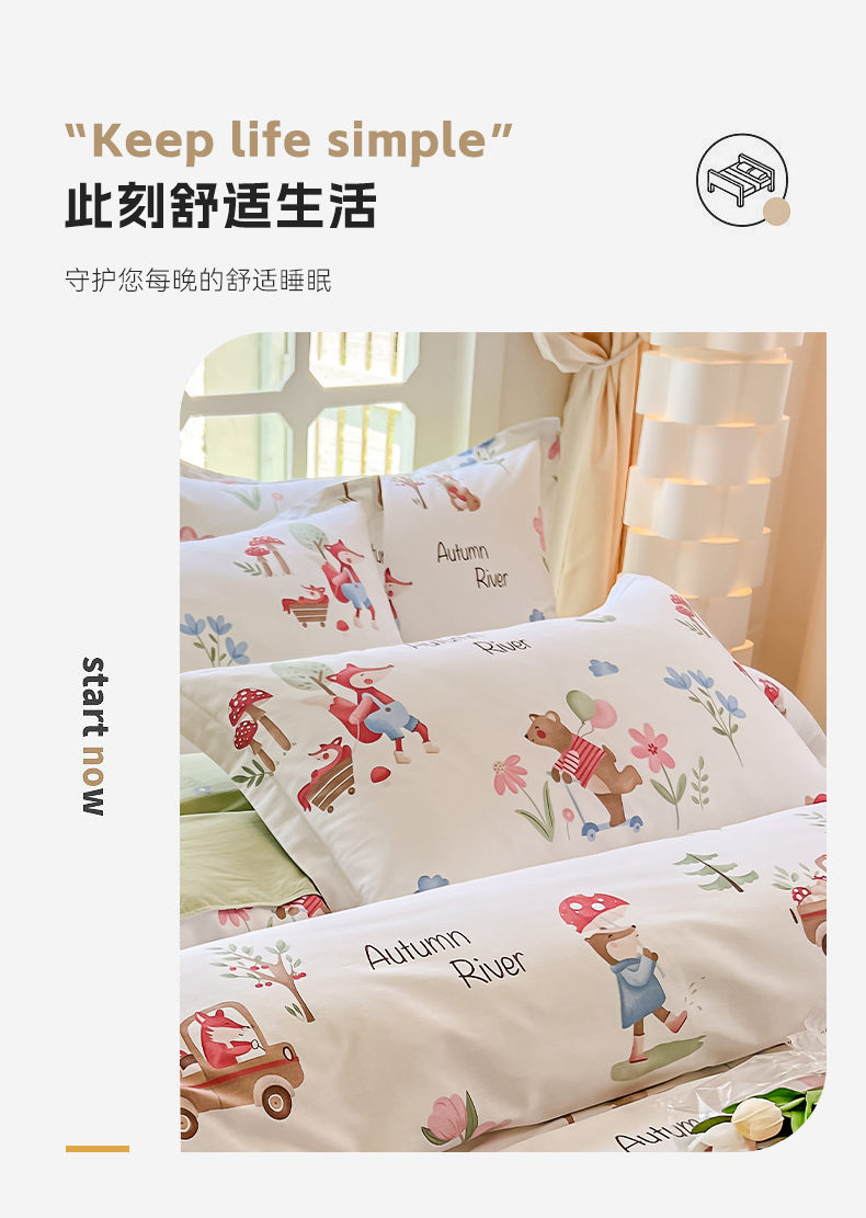 商品名称:绵庭家纺 2023新款12868系列全棉小清新印花单枕套 森林狂欢