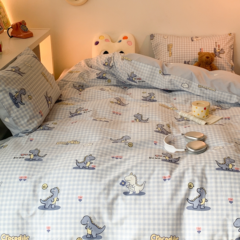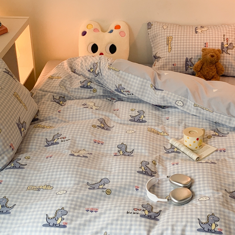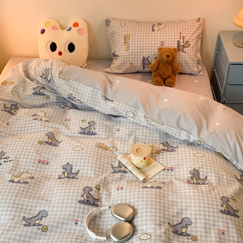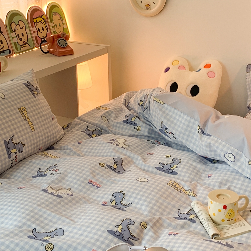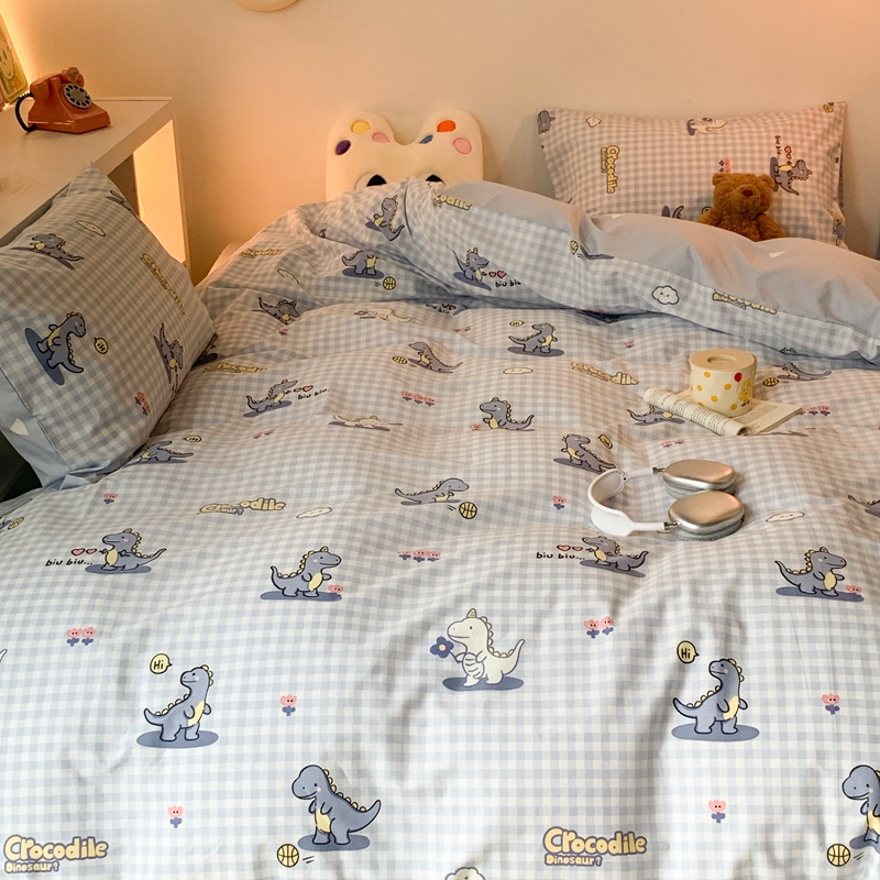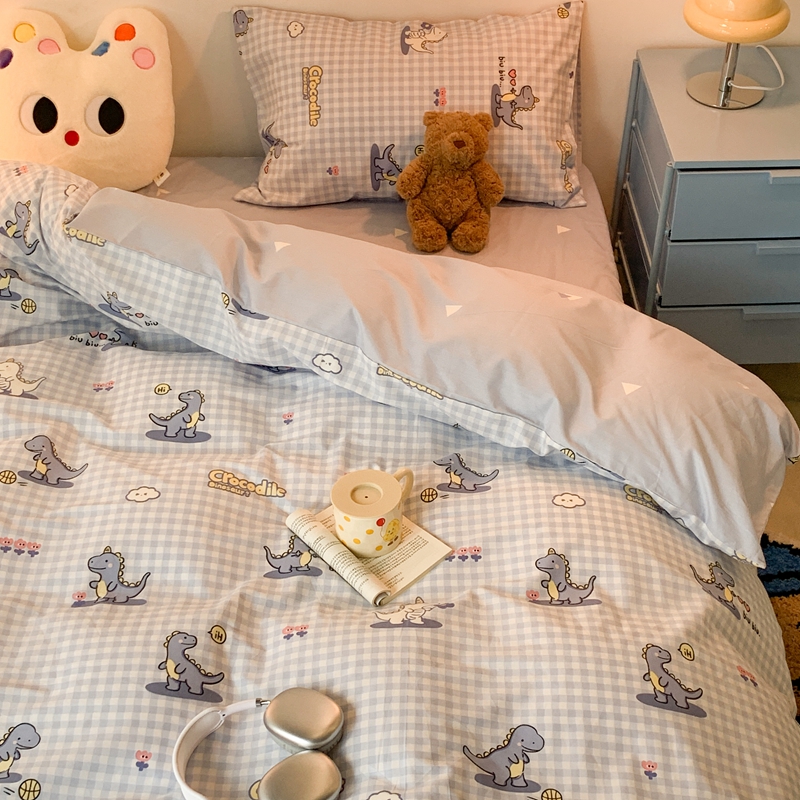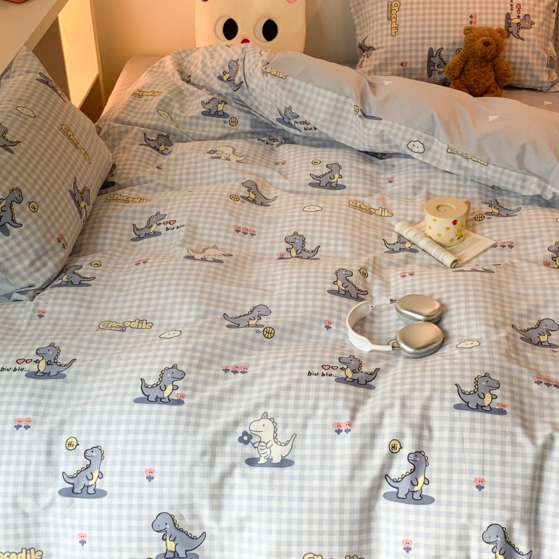昔可家纺 2023新款全棉四件套-萌趣卡通 蓝格恐龙