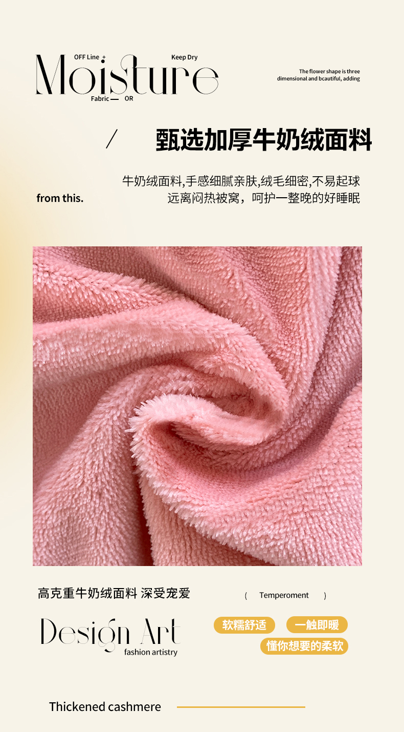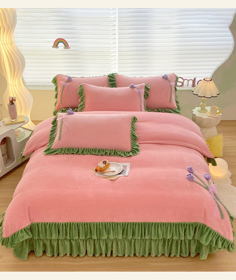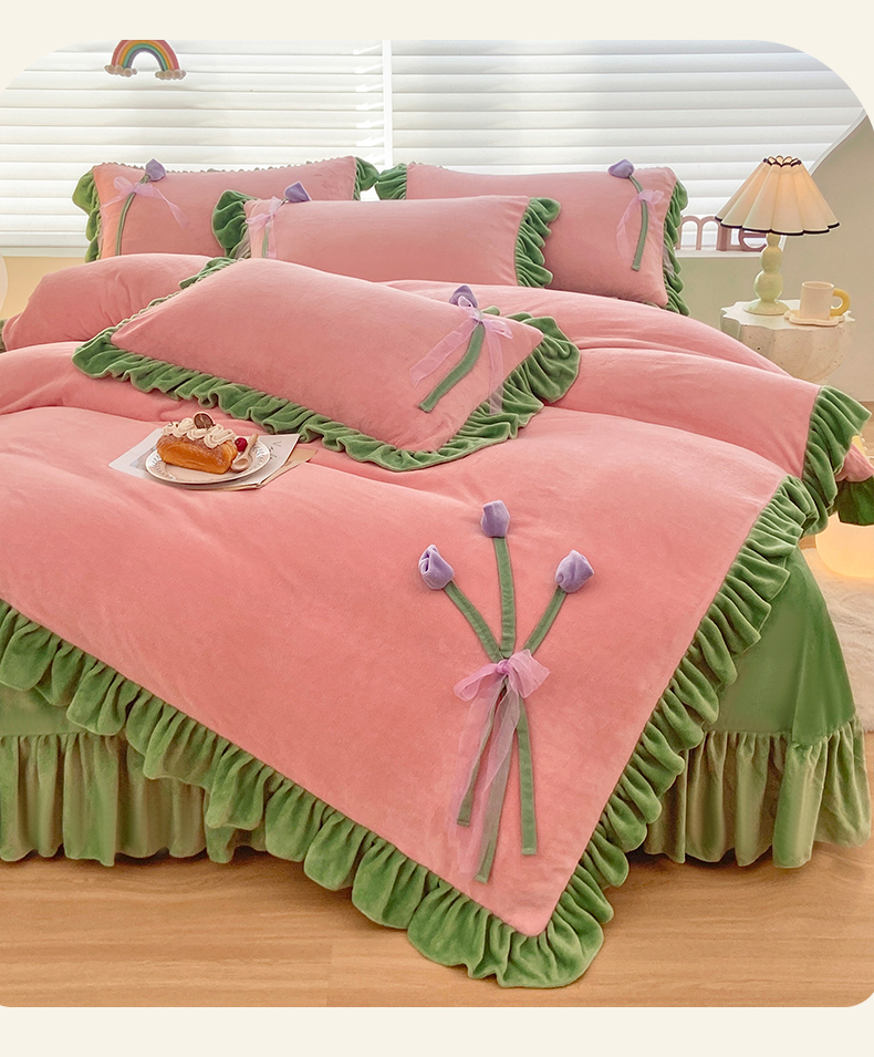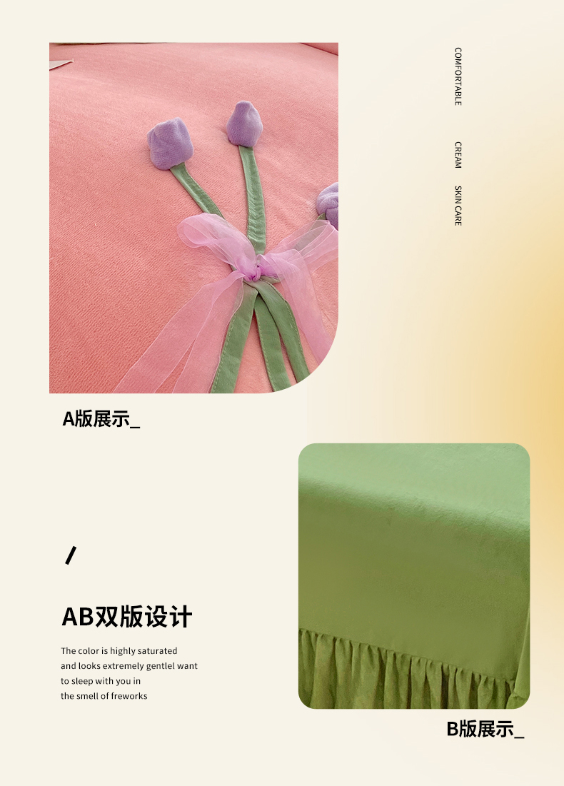 商品名称:言熙居 2024新款法莱绒牛奶绒高克重郁金香系列韩版四件套 郁金香粉