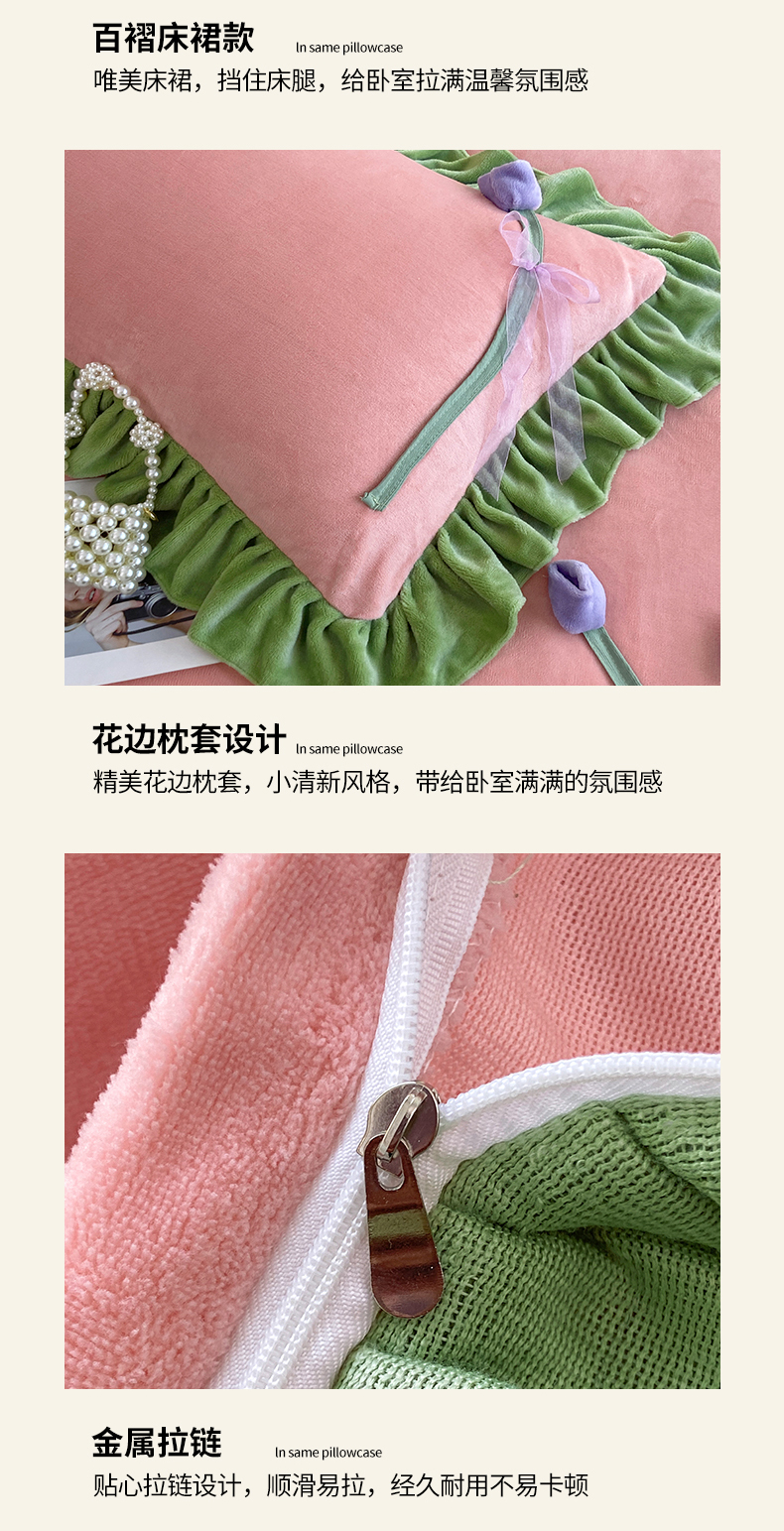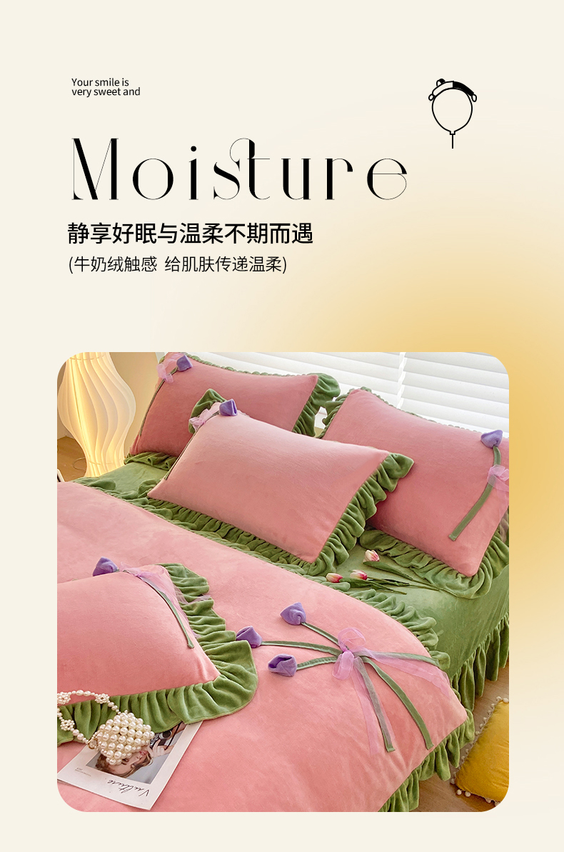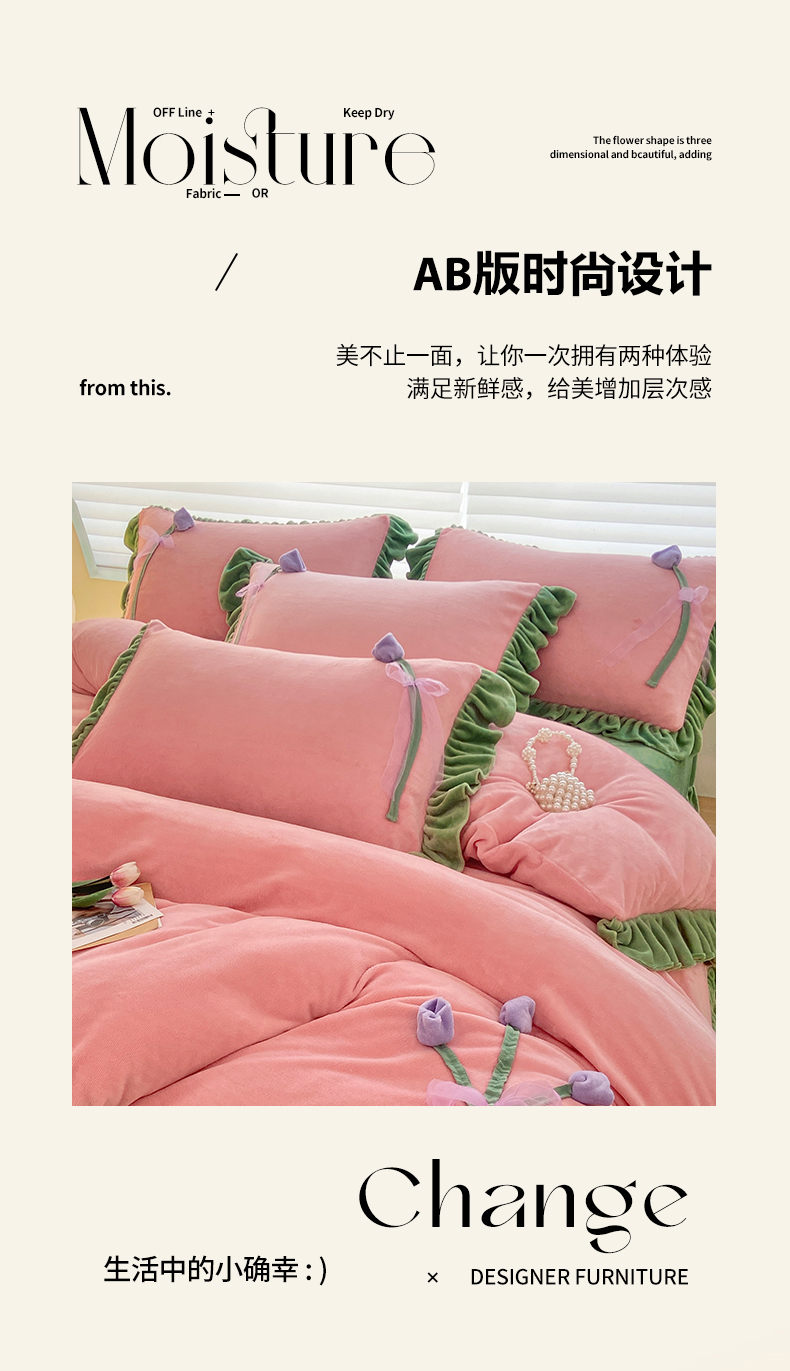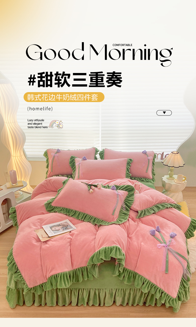 (总)言熙居家纺 2025新款A类兔毛绒韩版卡通花边四件套,蝴蝶结,幻蝶,墨枝,休闲一刻,映春,花眠