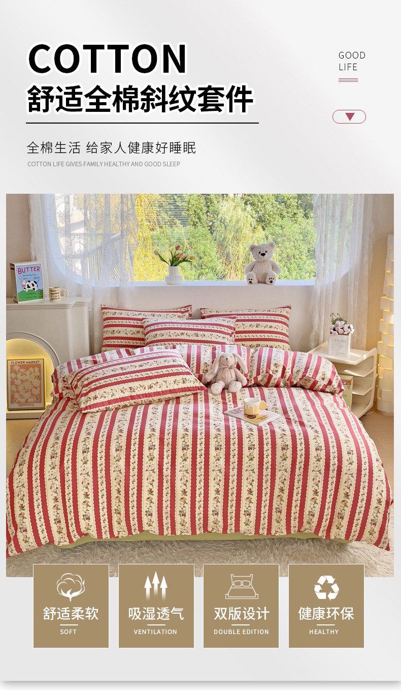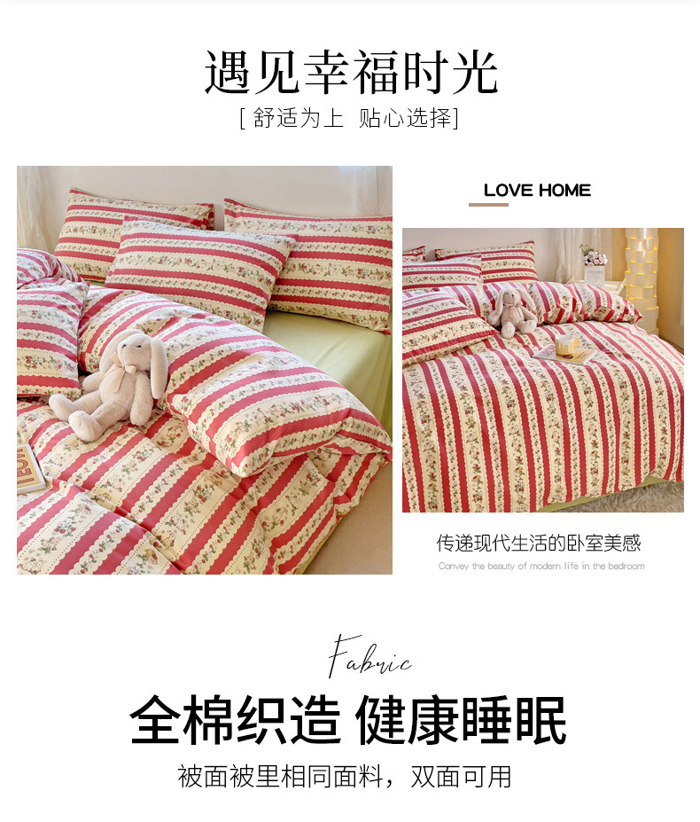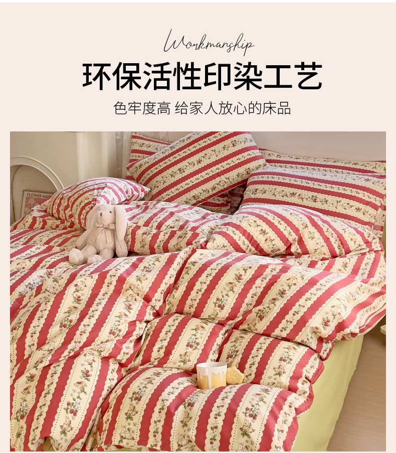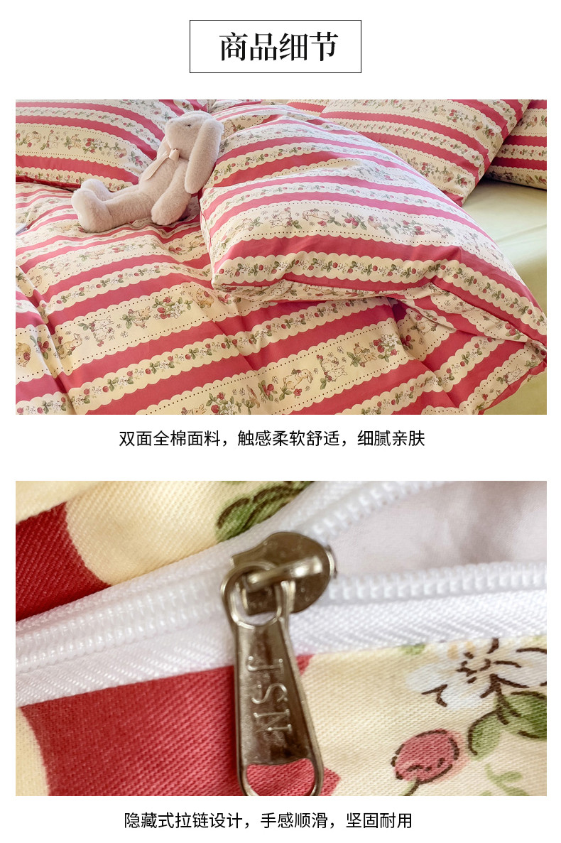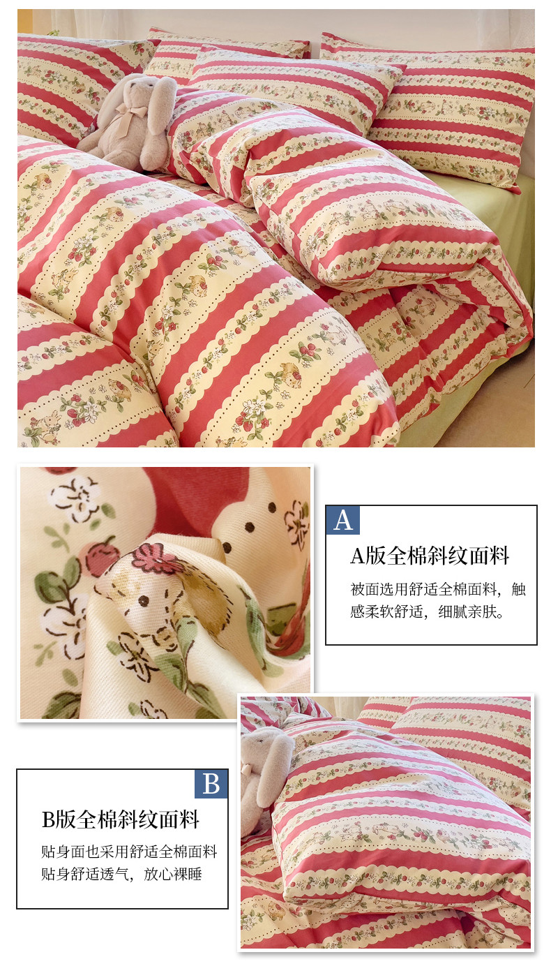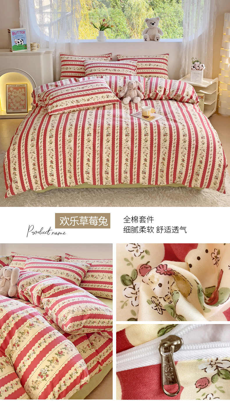 当前位置: 91家纺网 > 商品网购 > 床品套件 > 四件套 > 全棉普通四件套 > 金丝鸟 2023新款全棉可爱卡通印花小清新四件套-第二批 欢乐草莓兔