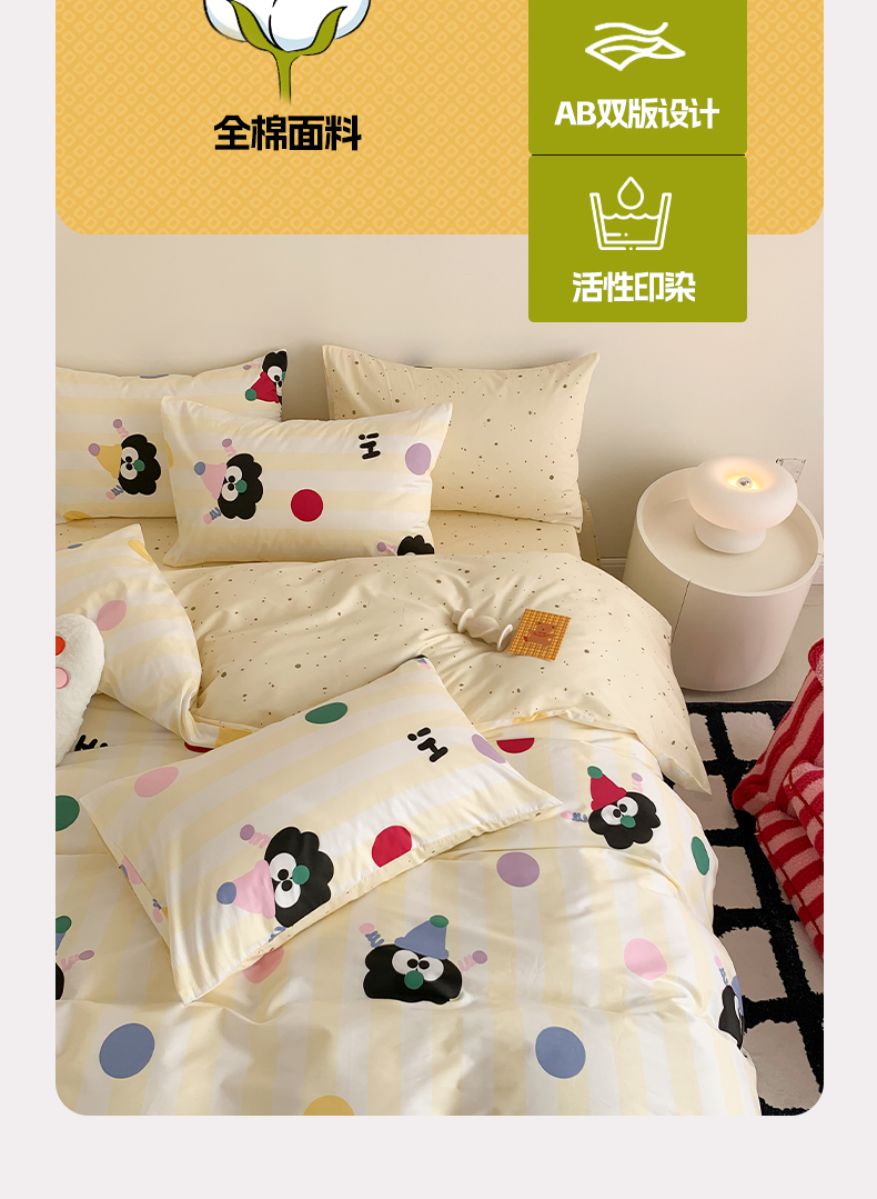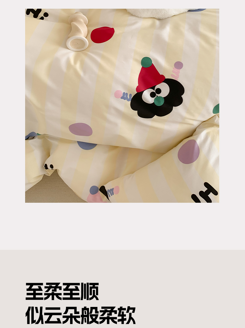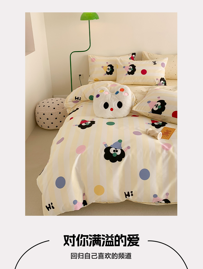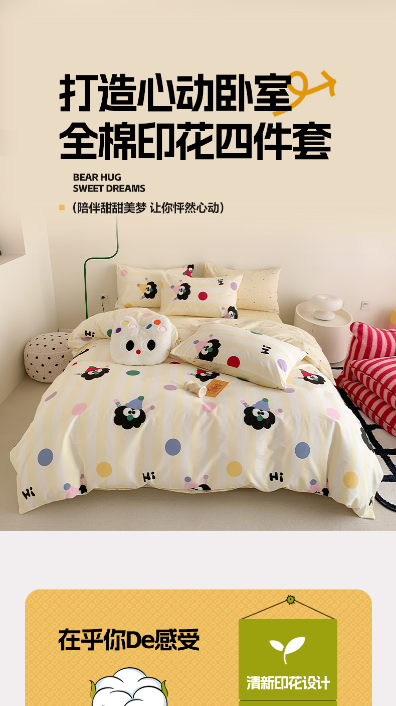 商品名称:澳萝拉 2024新款全棉印花亲肤舒适四件套 黑眼豆豆