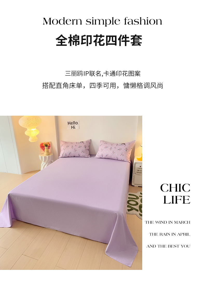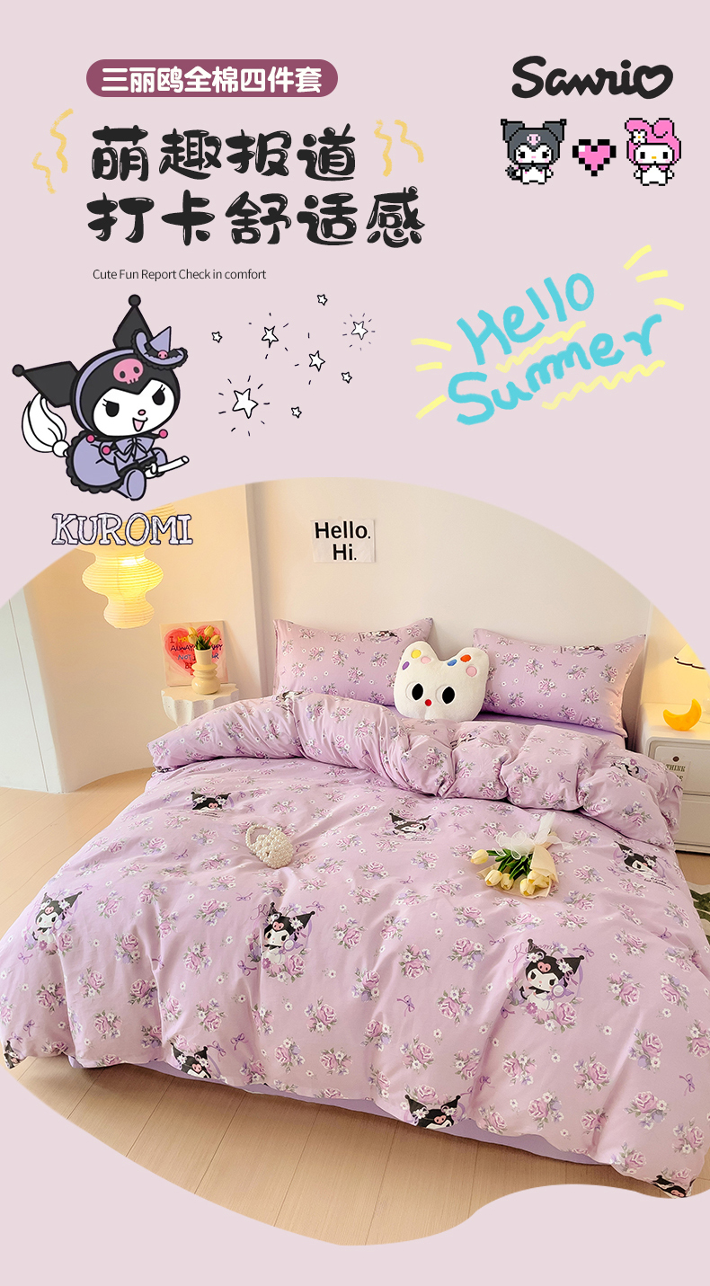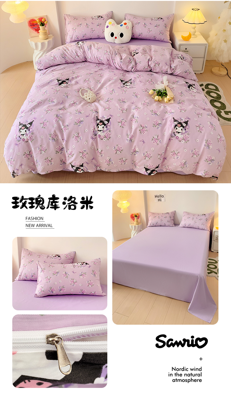 珺柔家纺 2024新款13070全棉三丽鸥系列四件套 玫瑰库洛米