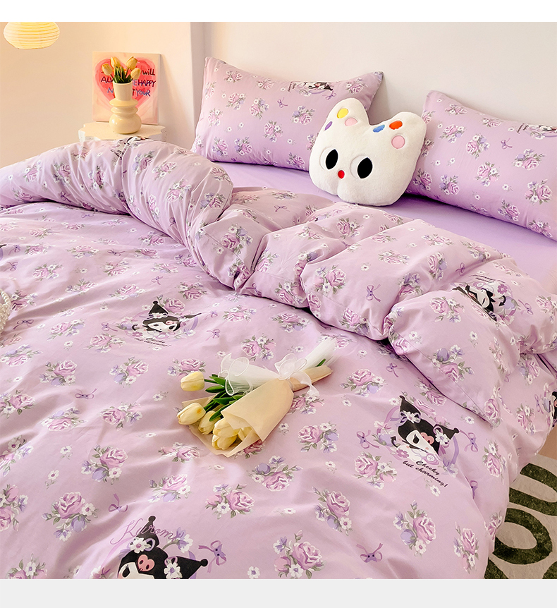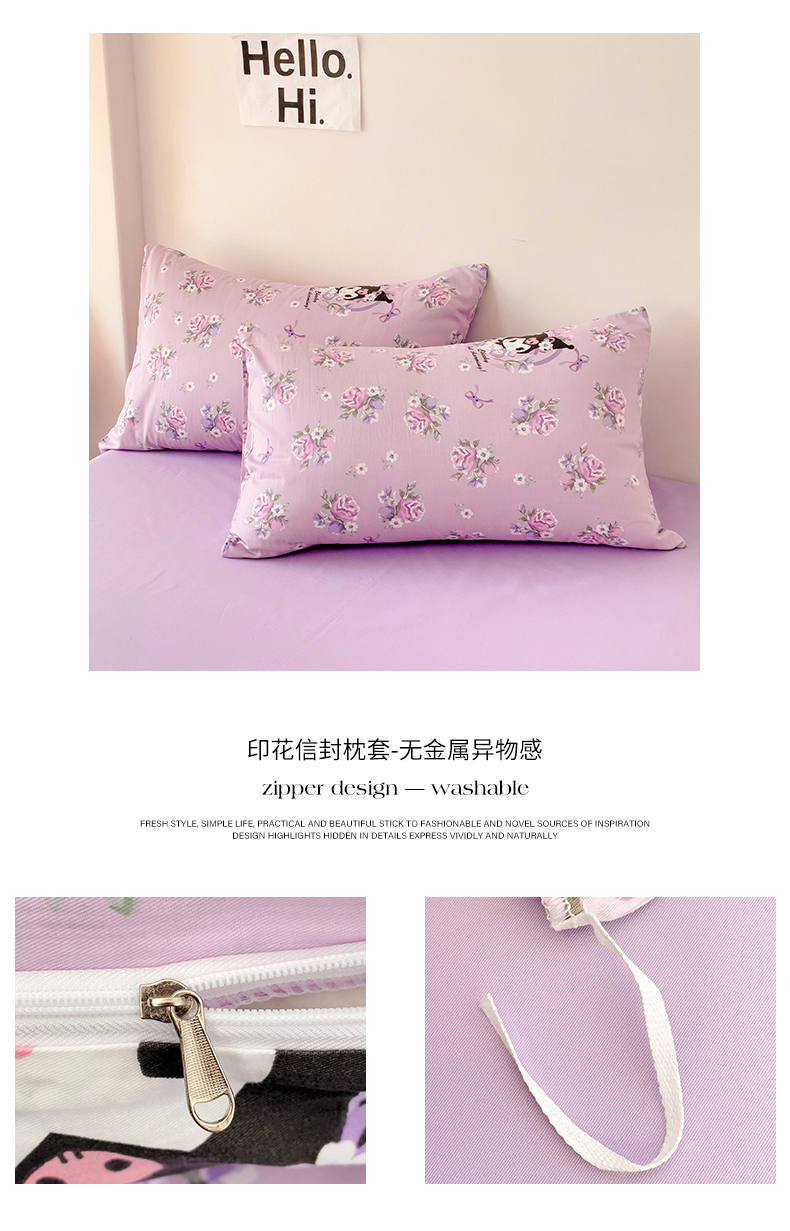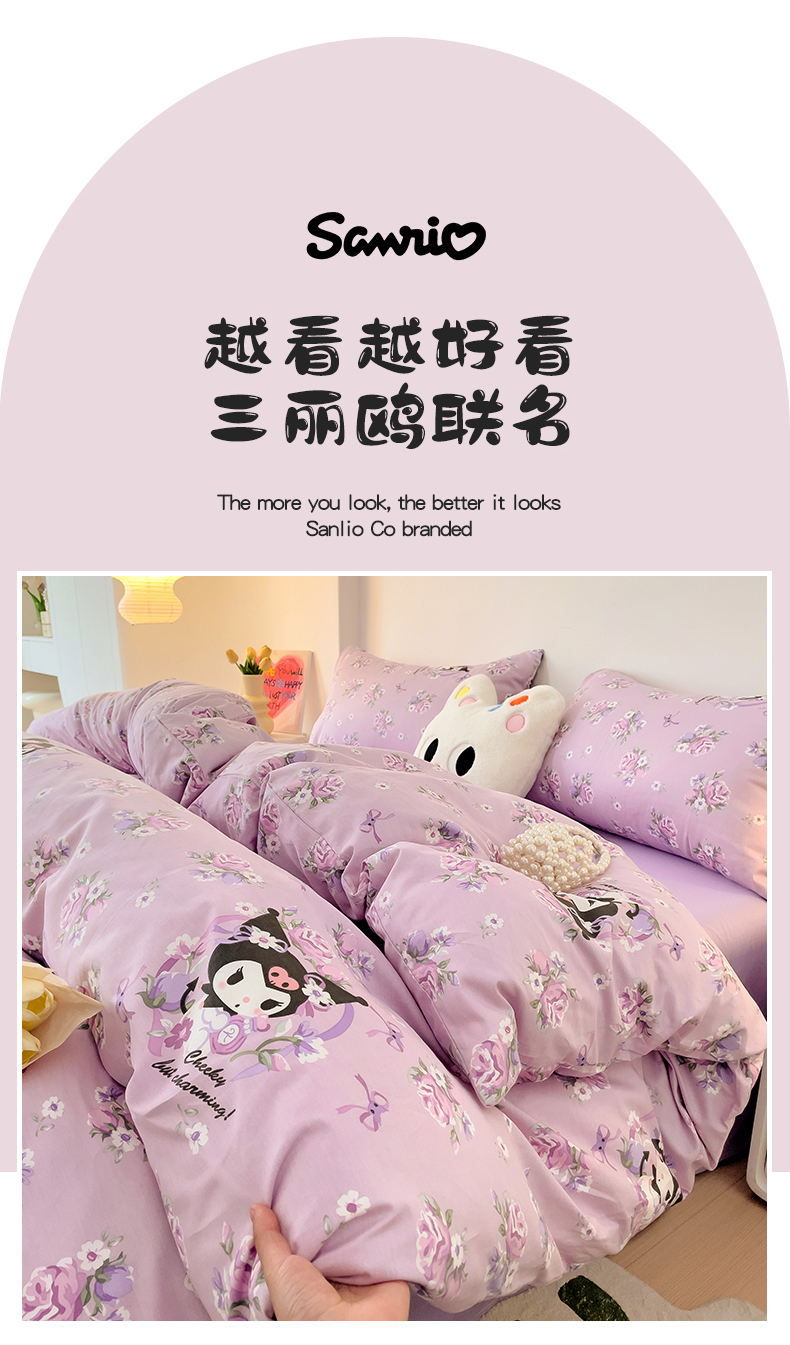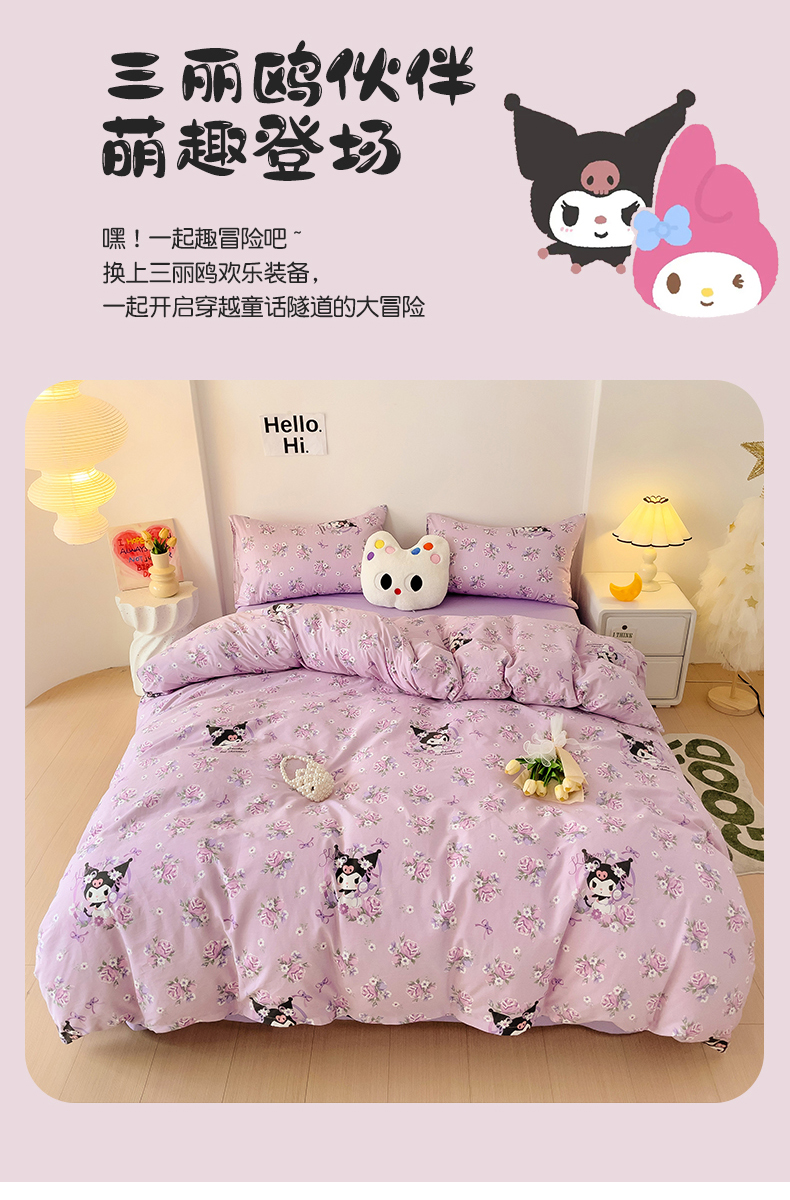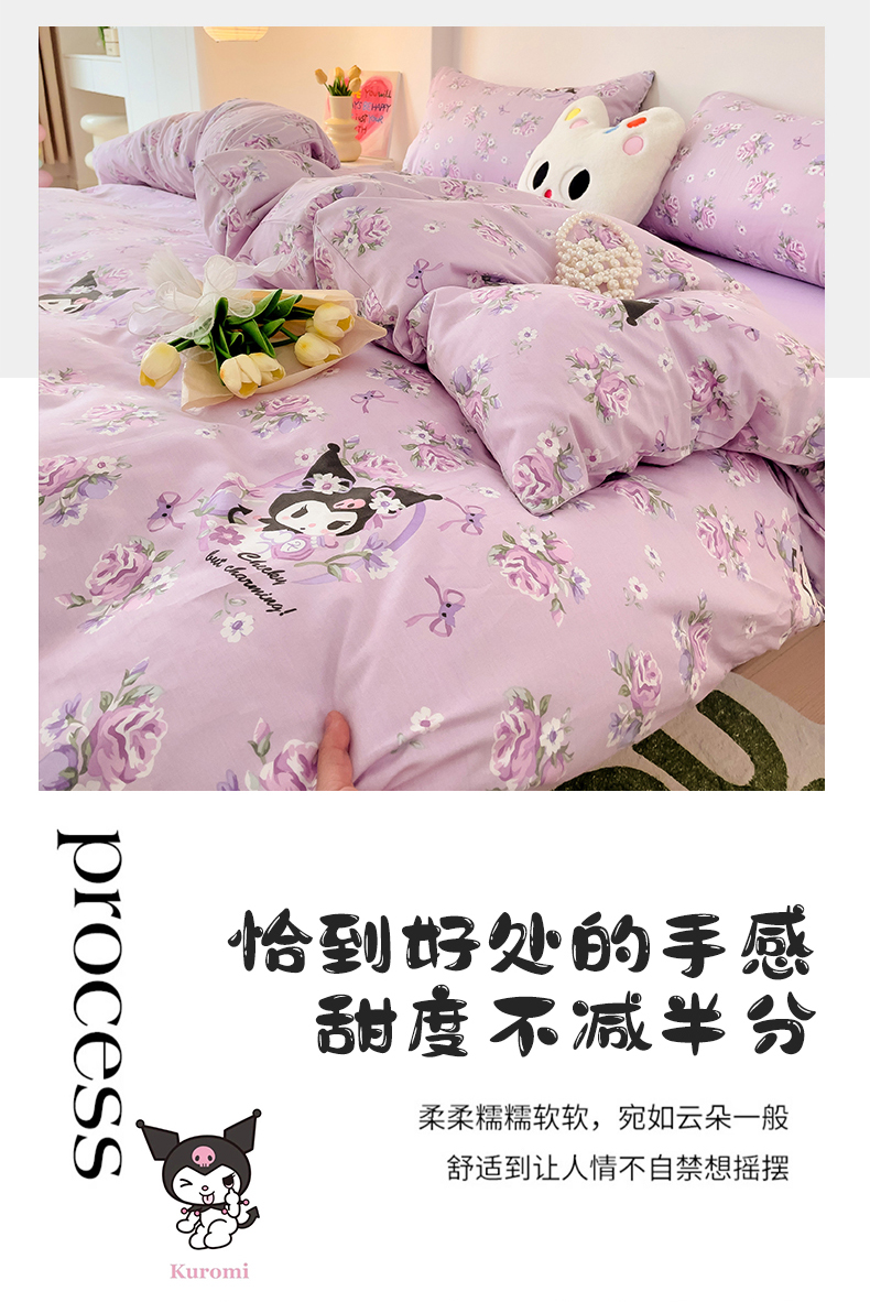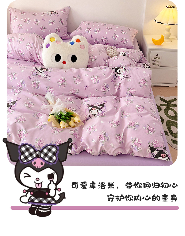 商品名称:珺柔家纺 2024新款13070全棉三丽鸥系列四件套 玫瑰库洛米
