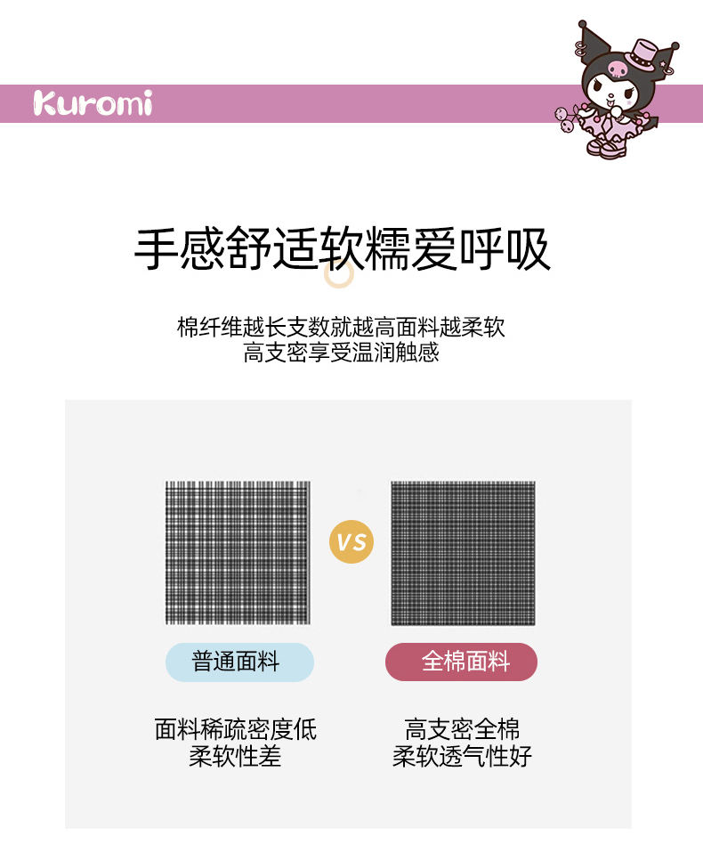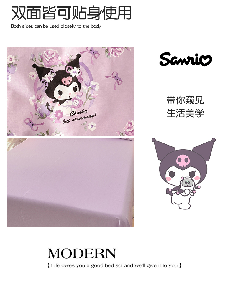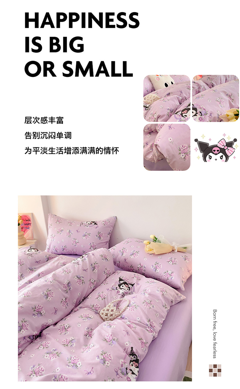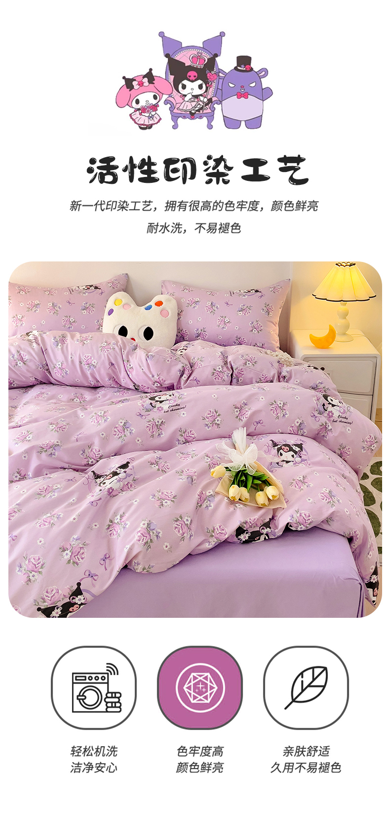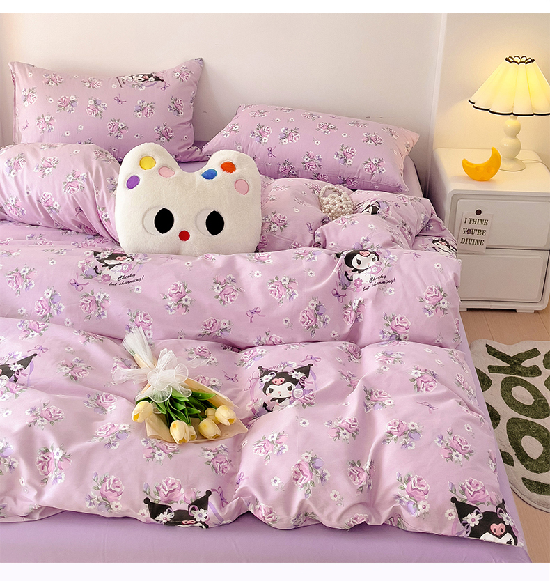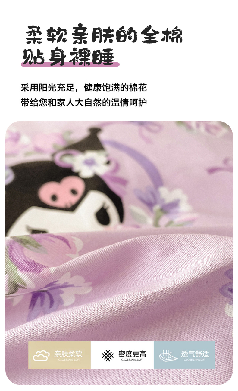 商品名称:珺柔家纺 2024新款13070全棉三丽鸥系列四件套 玫瑰库洛米