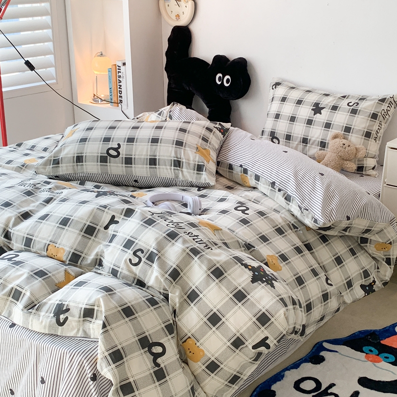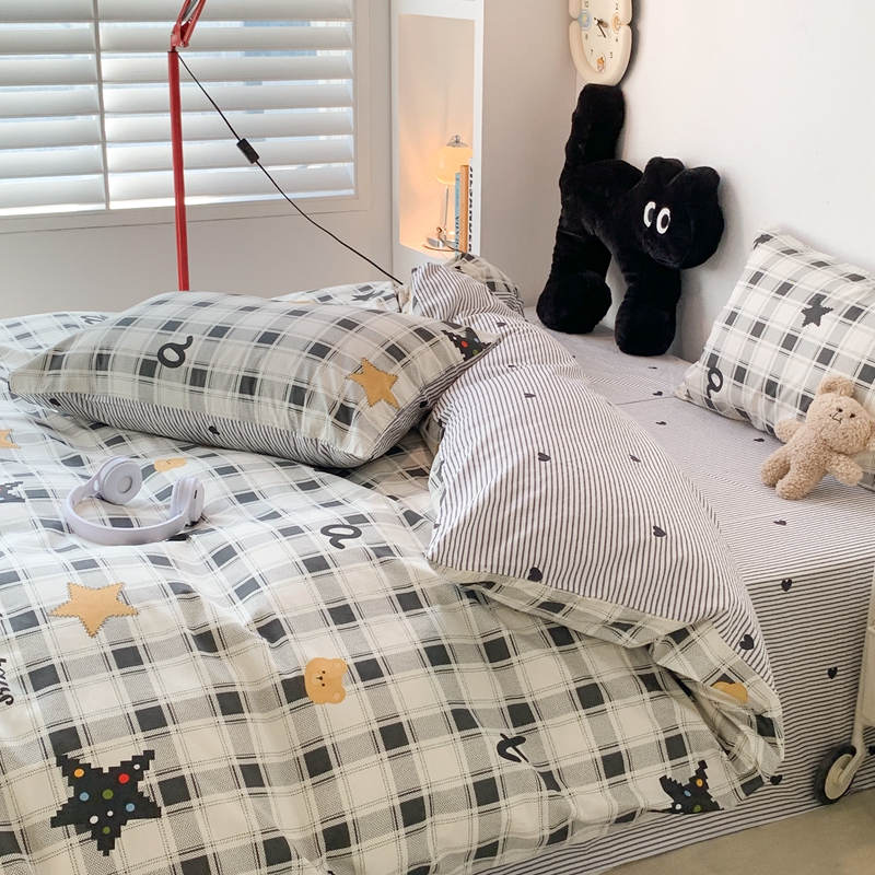 昔可家纺 2023新款12月卡通全棉四件套 格子小星星
