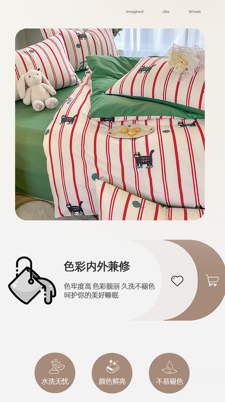 (总)简宜家居 2023新款小清新卡通纯棉全棉斜纹四件套,贩卖美好,蓝彩,蓝色心愿,梦享,奇妙农场,星月童话