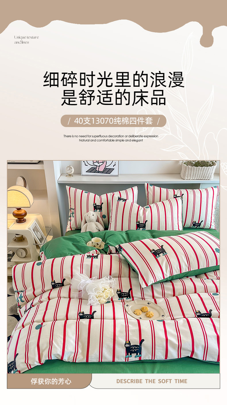 简宜2023新款13070纯棉全棉40支斜纹卡通小清新学生三件套四件套,花园兔,紫葡仙子,倩影粉,hello 萌熊,嘟嘟小车,简笔画,开心小黄鸭,梦幻城堡,浓情爱意