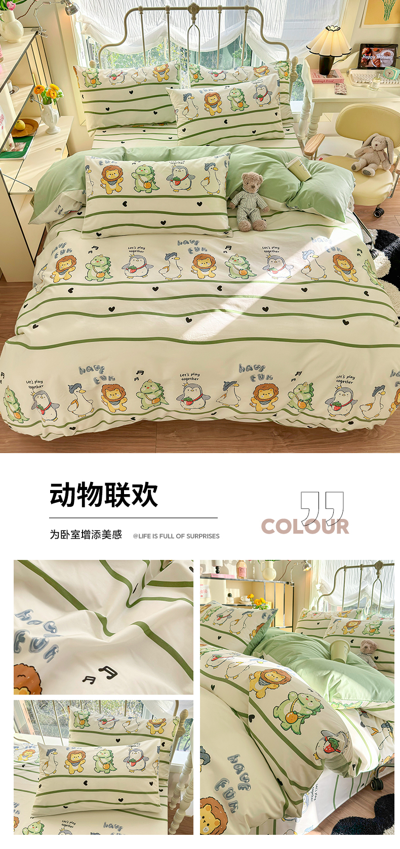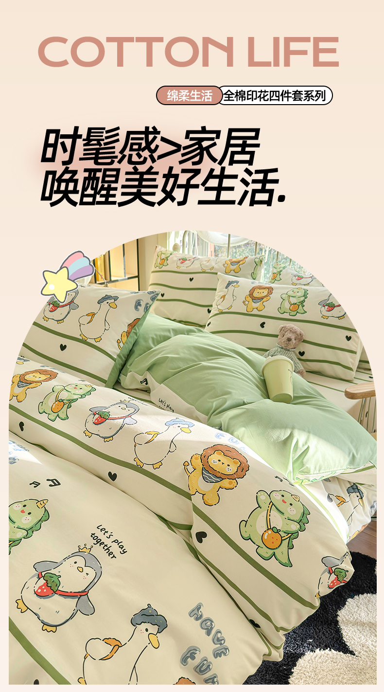 当前位置: 91家纺网 > 商品网购 > 床品套件 > 四件套 > 全棉普通四件套 > 名兮家居 2024新款卡通风系列全棉四件套 动物联欢