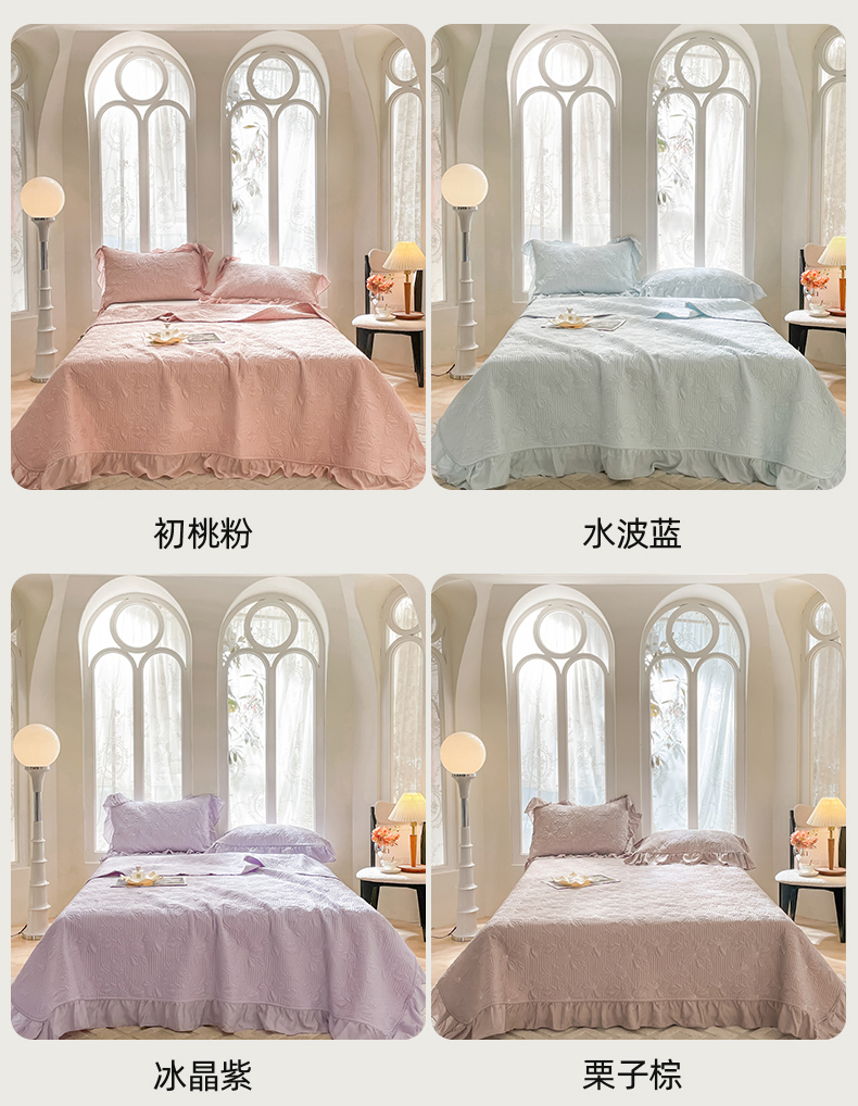 (总)上喜 2025新款全棉提花刺绣款床盖四件套,粉色,卡其色,绿色,香槟色,紫色