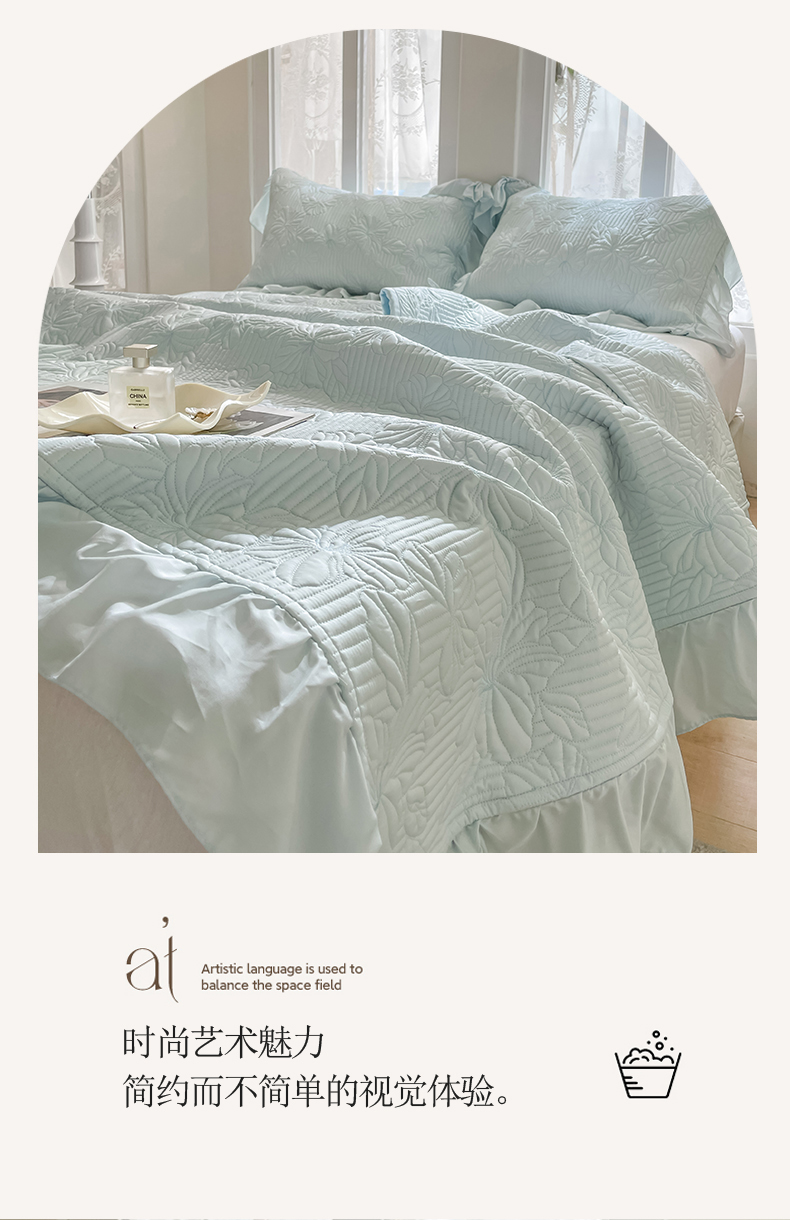 (总)上喜 2025新款全棉砂洗床盖新升级第五代,白色,湖蓝,奶油米,深灰,深咖
