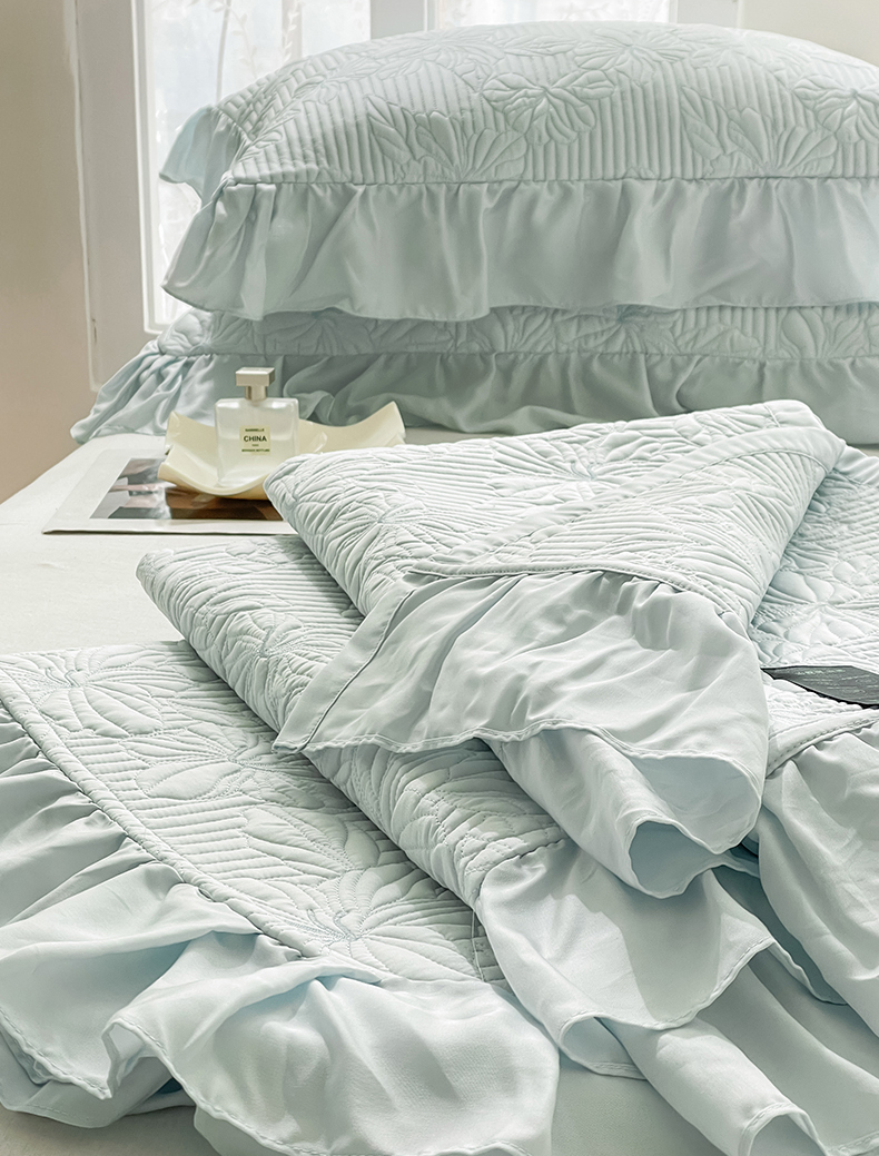 商品名称:上喜 热卖繁花莱赛尔天丝床盖三件套 水波蓝