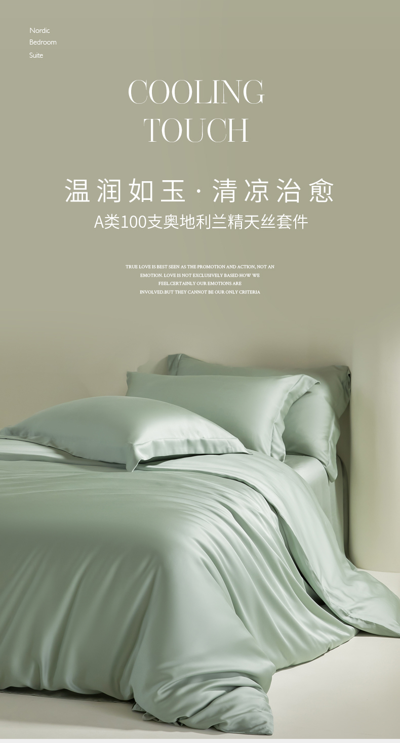 商品名称:(总)618家纺 2024新款A类60S100支兰精天丝四件套-简约系列 天丝简约石墨绿