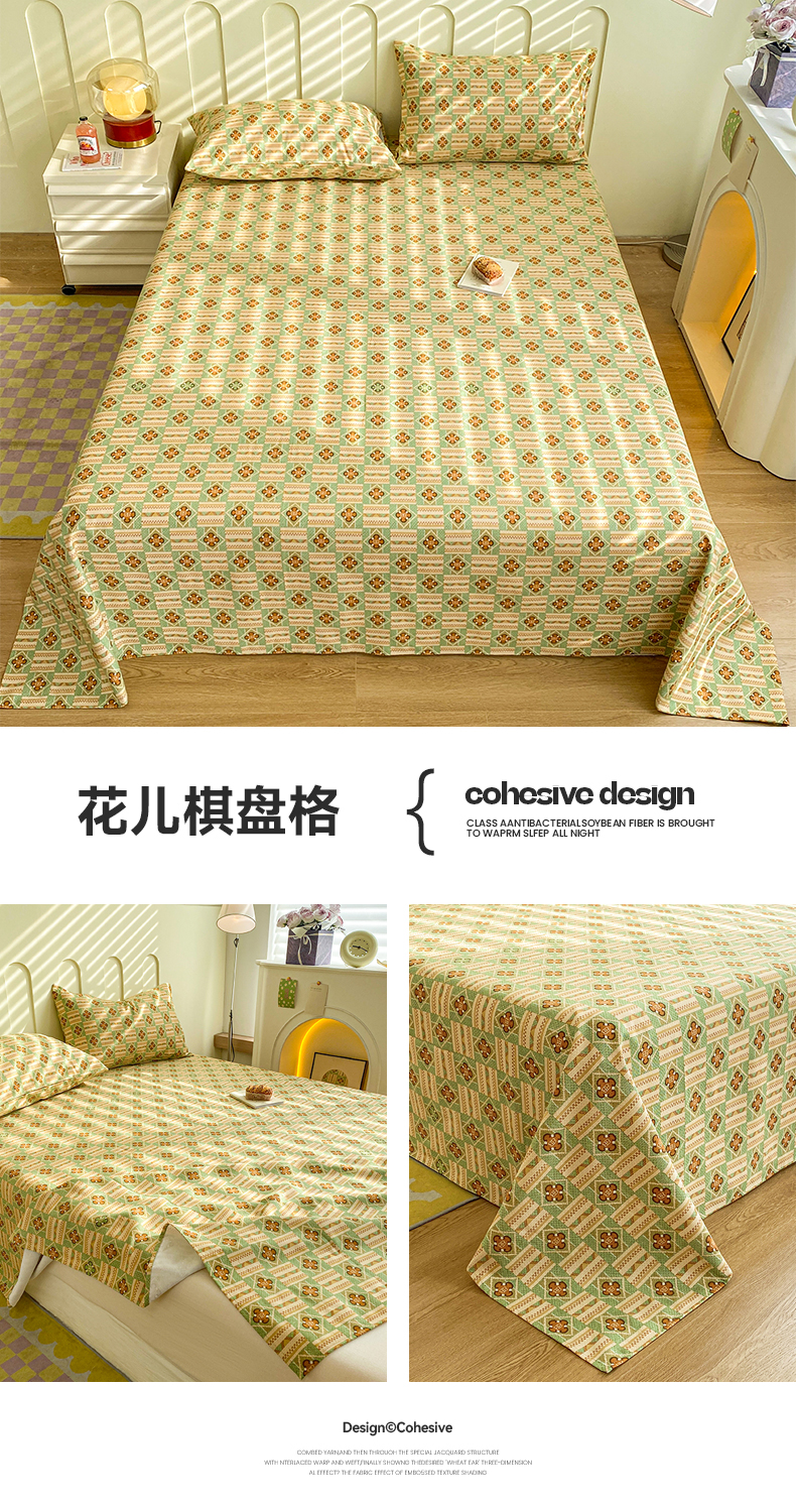 当前位置: 91家纺网 > 商品网购 > 床上用品 > 床单 > 寐眠 2024新款全棉老粗布印花床单床盖 花儿棋盘格