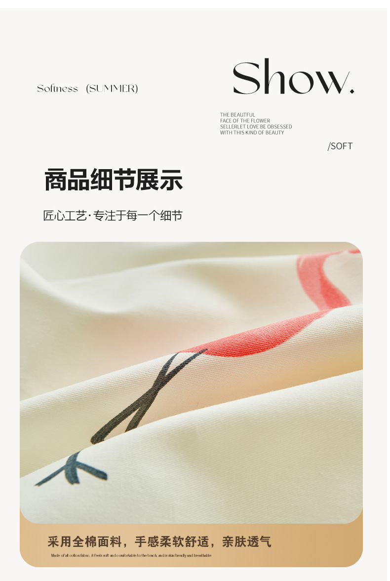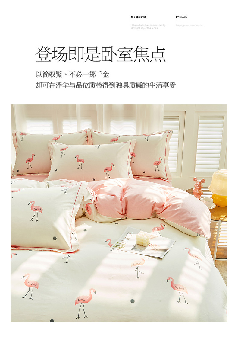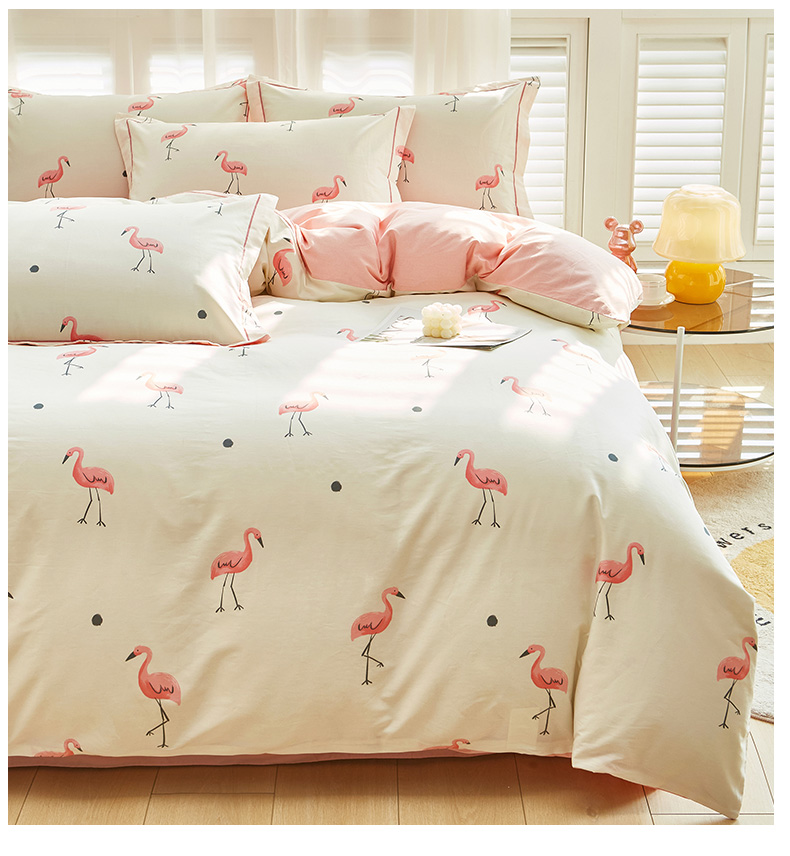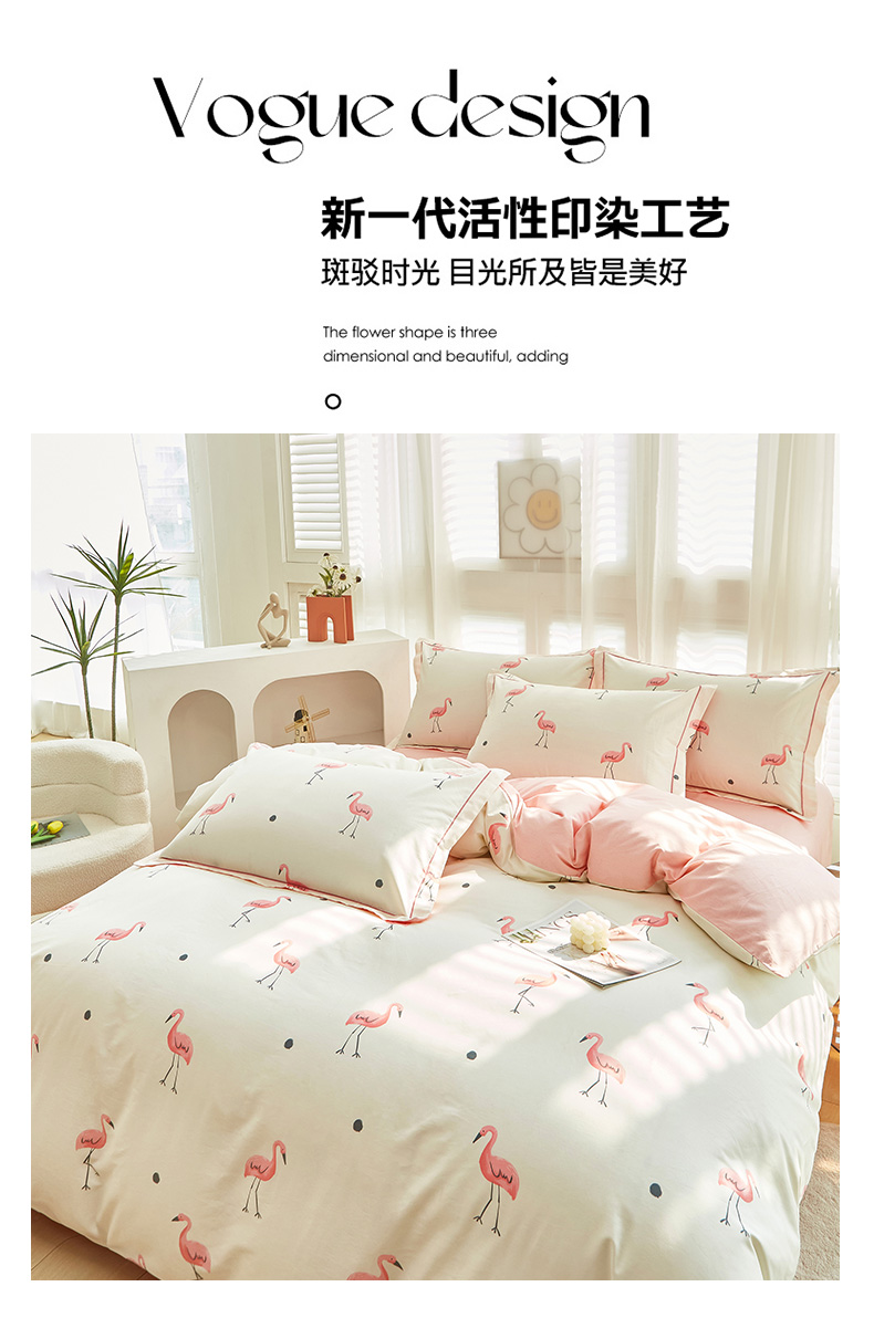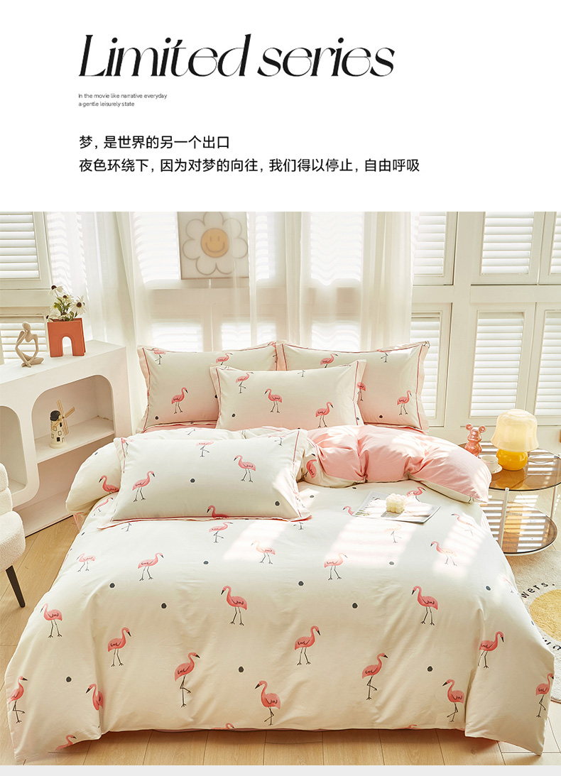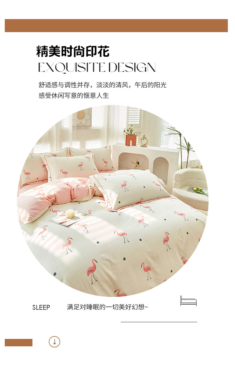 商品名称:雲归梦 2024新款全棉活性13372印花四件套 火烈鸟 米