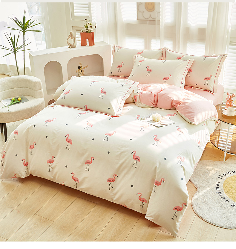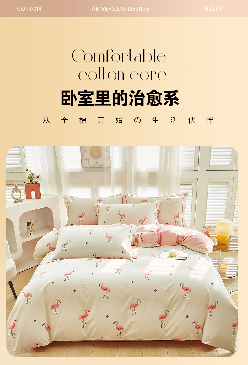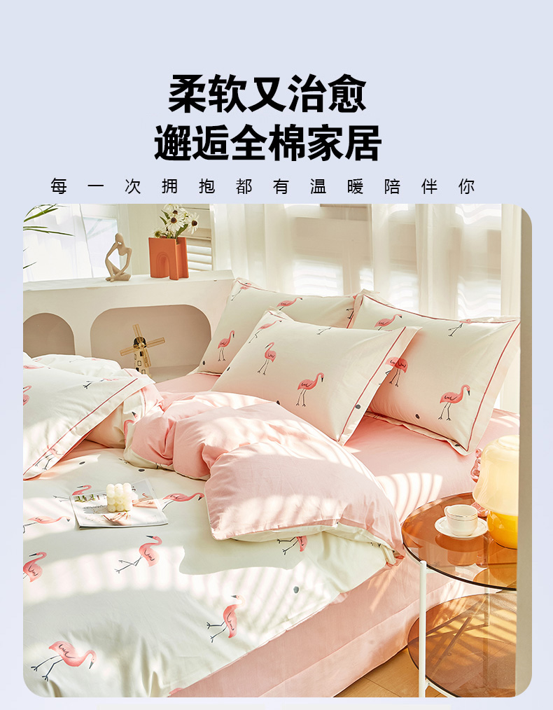 雲归梦 2024新款全棉活性13372印花四件套 火烈鸟 米