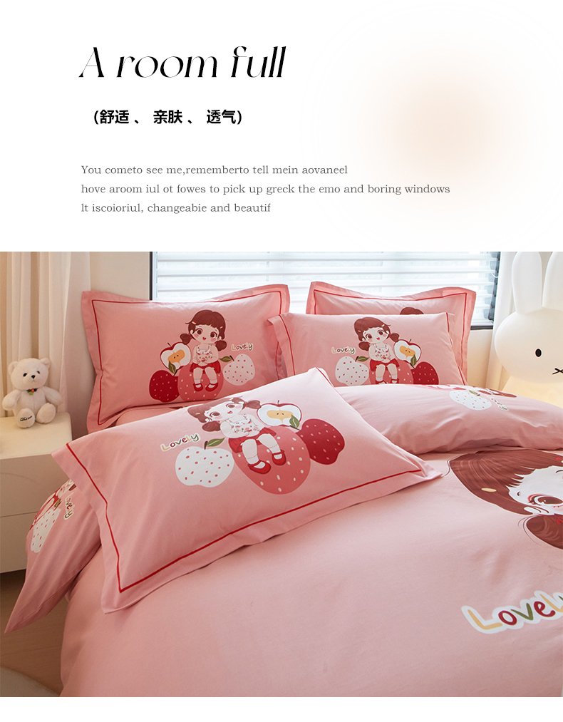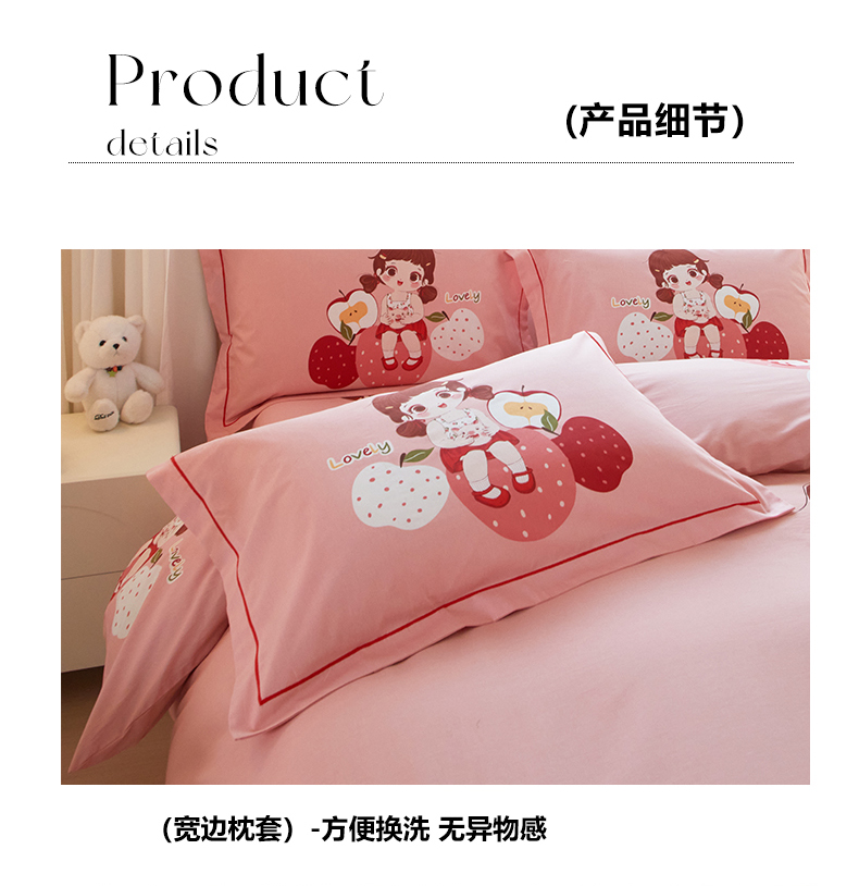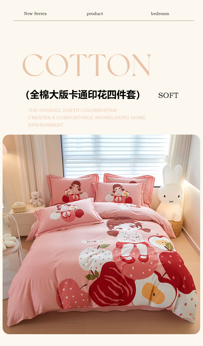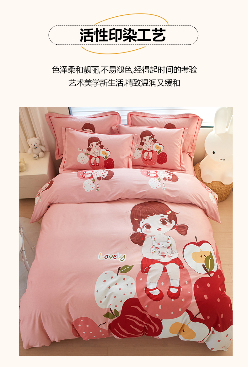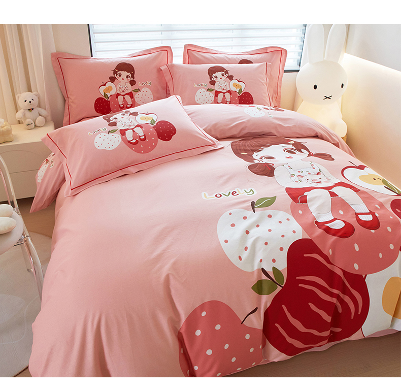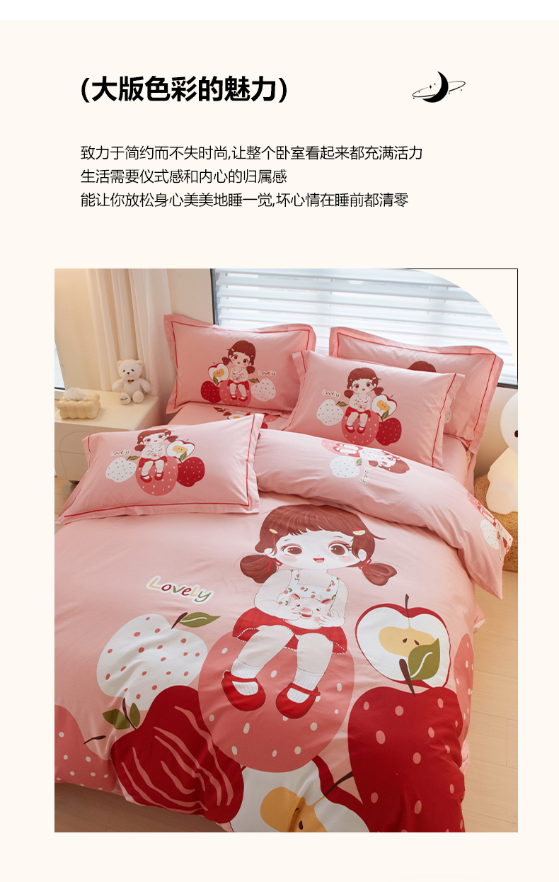 启航家居 2025春夏直播爆款全棉大版印花四件套 小苹果粉