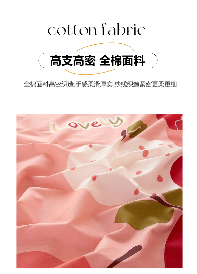商品名称:启航家居 2025春夏直播爆款全棉大版印花四件套 小苹果粉