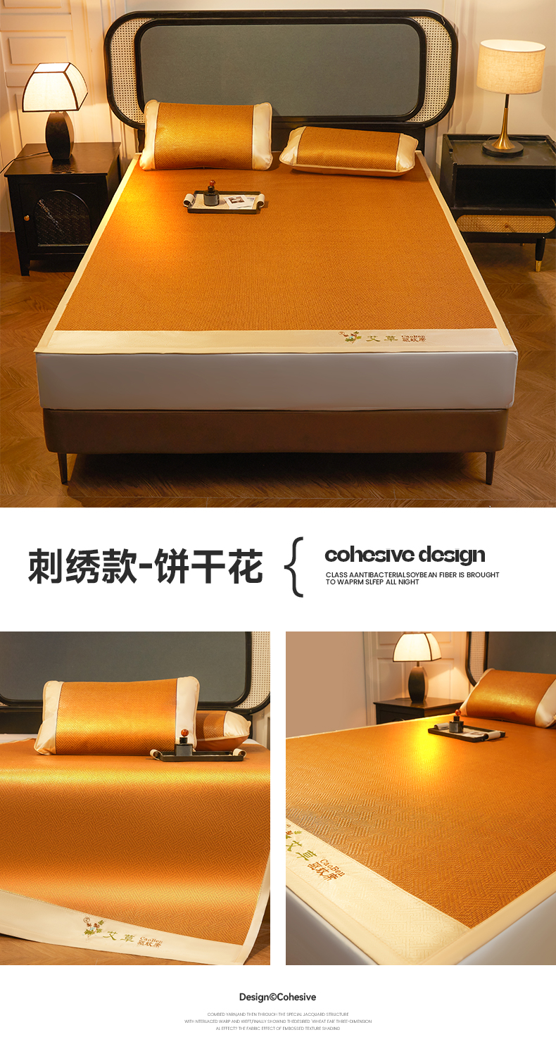商品名称:大元 2026新款凉席刺绣艾草藤席 刺绣款-饼干花