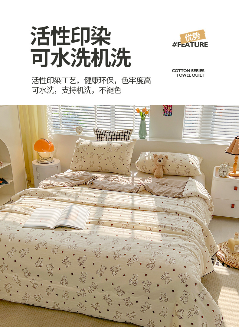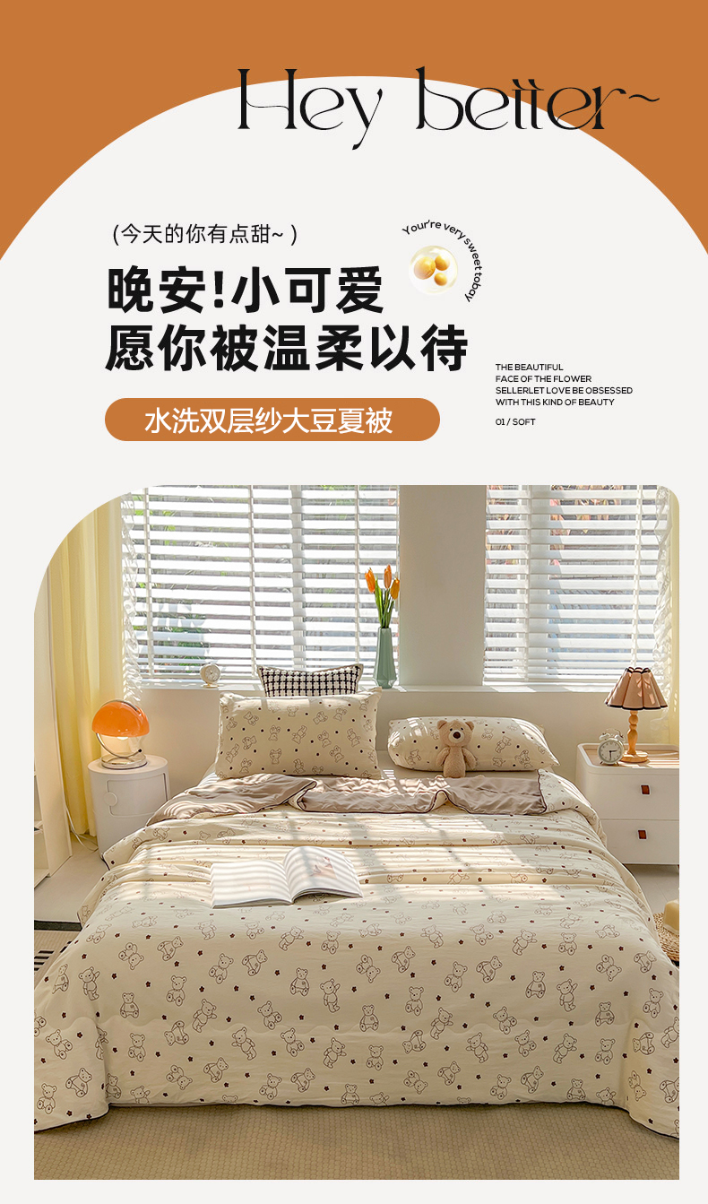 艺菲阁家纺 2024新款大豆蛋白水洗双层纱夏被 小熊院长