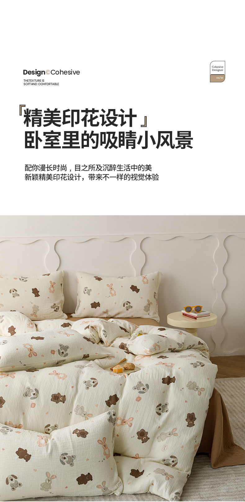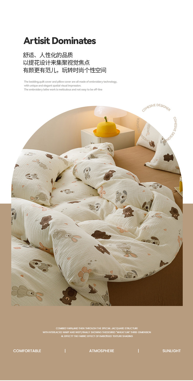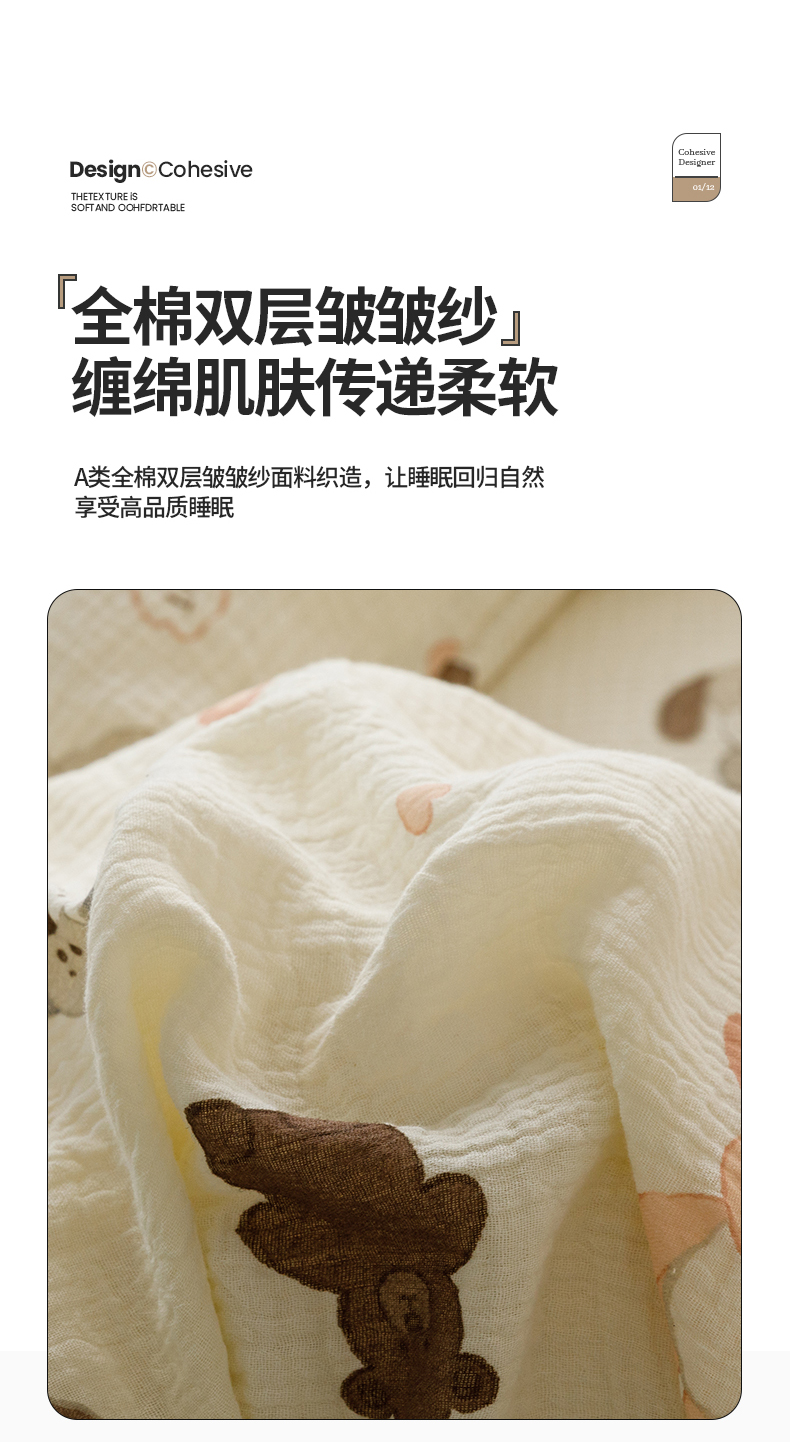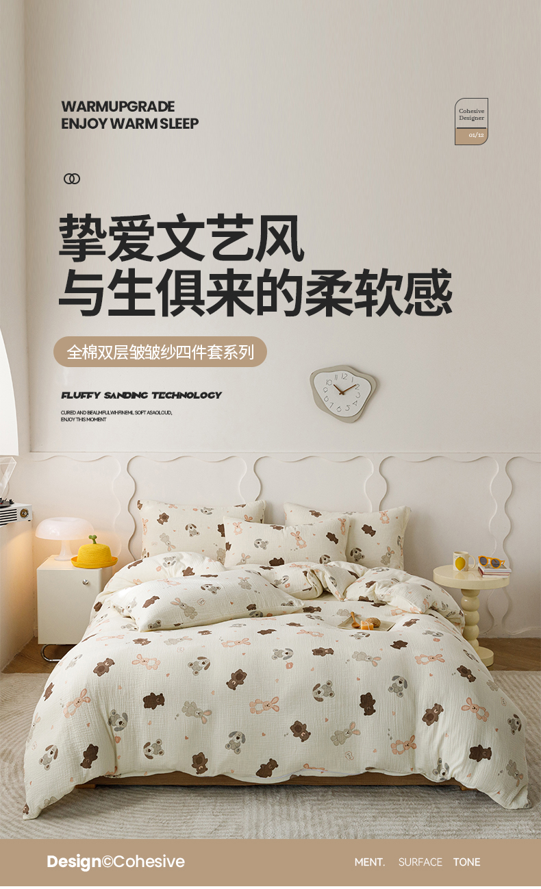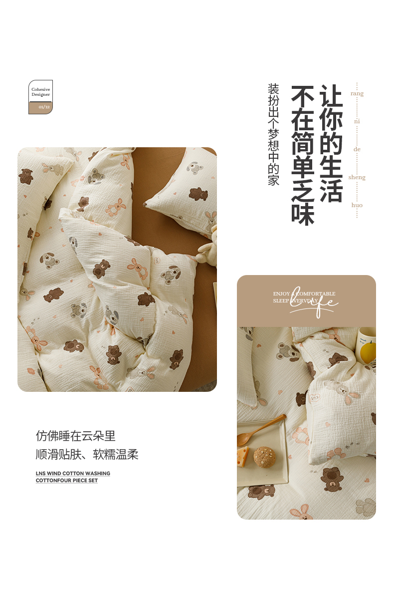 商品名称:蜜柚 2024新款全棉双层皱皱纱四件套 动物乐园