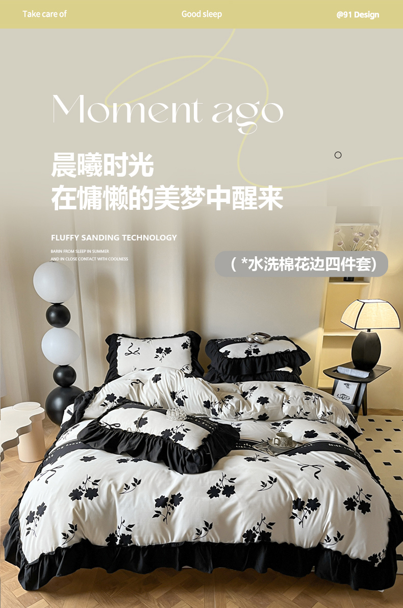 当前位置: 91家纺网 > 商品网购 > 床品套件 > 四件套 > 水洗棉四件套 > 花伞家居 2024新款水洗棉花边四件套-妮娜 妮娜-星星叶
