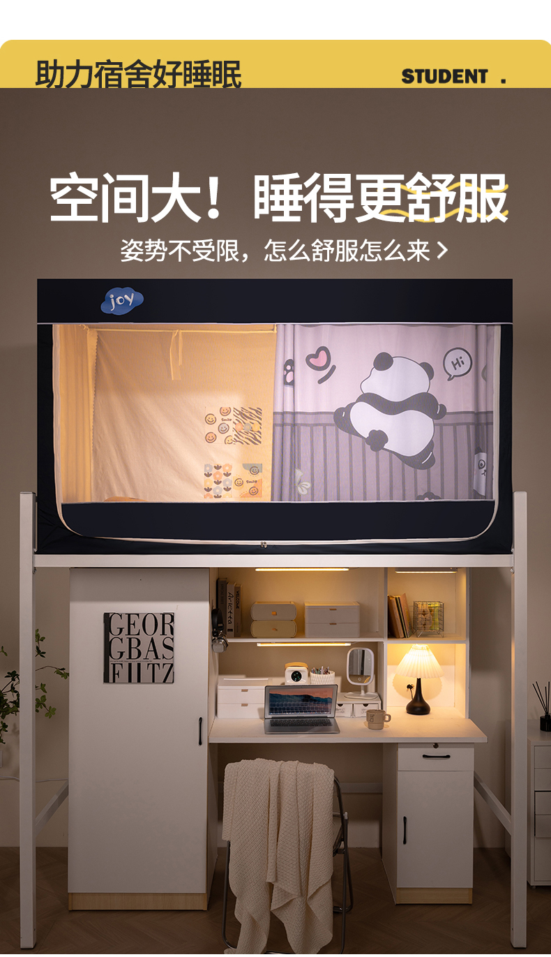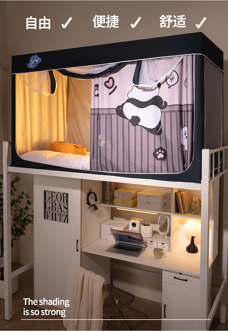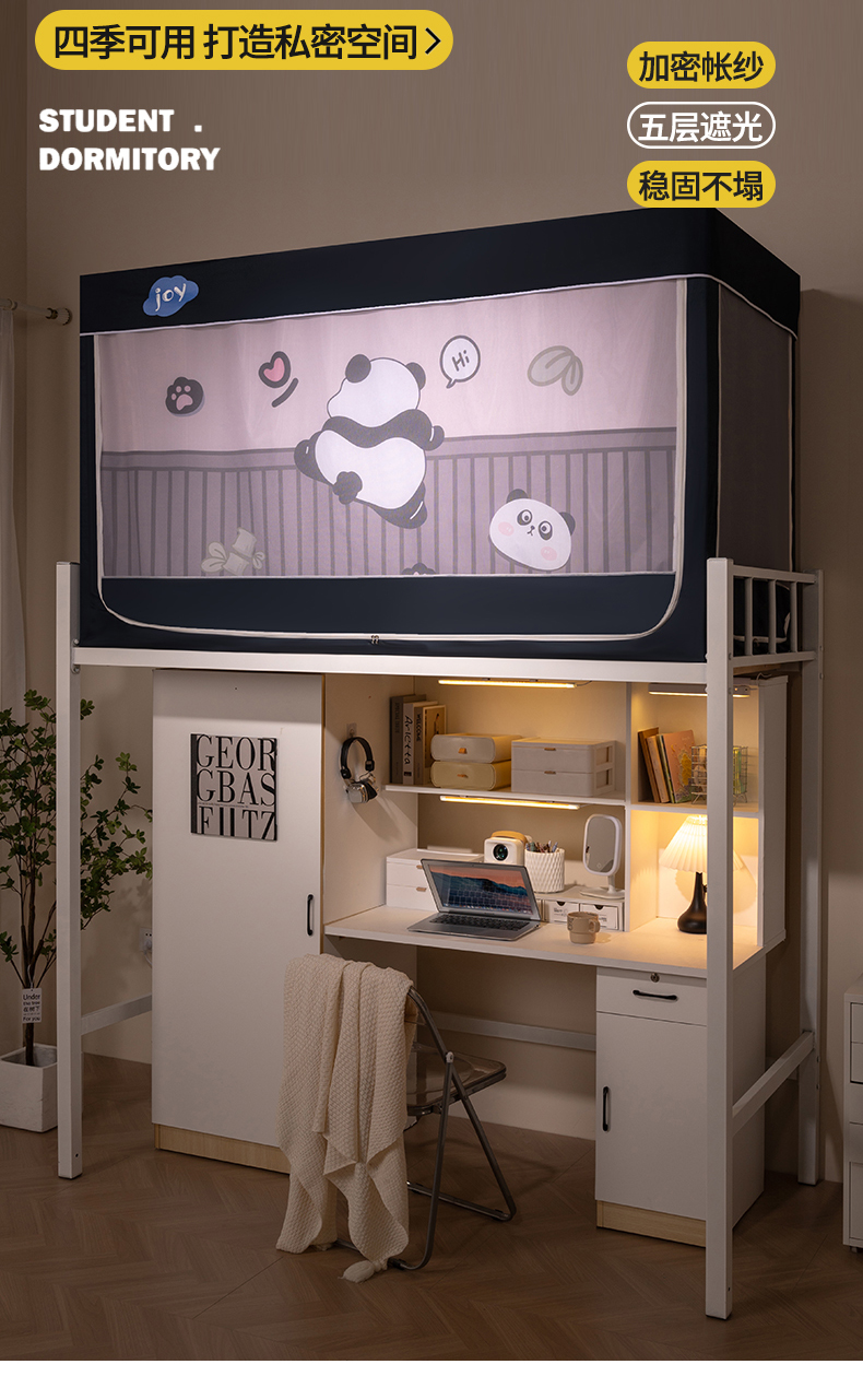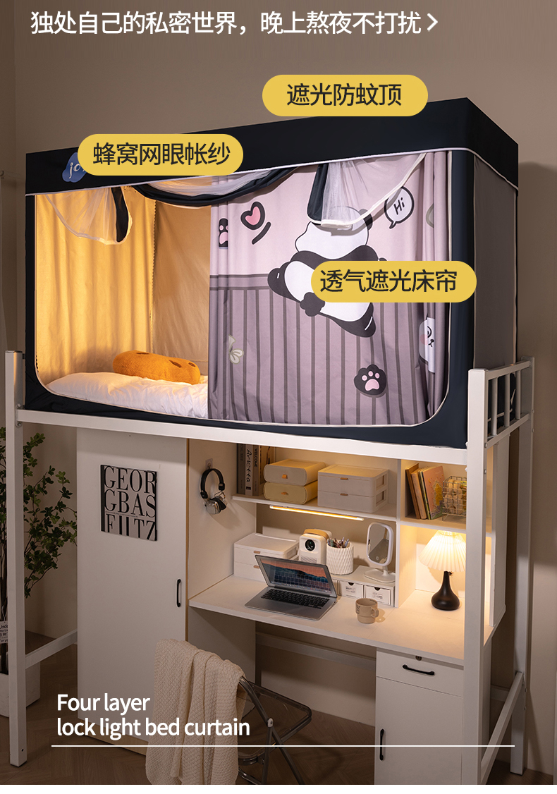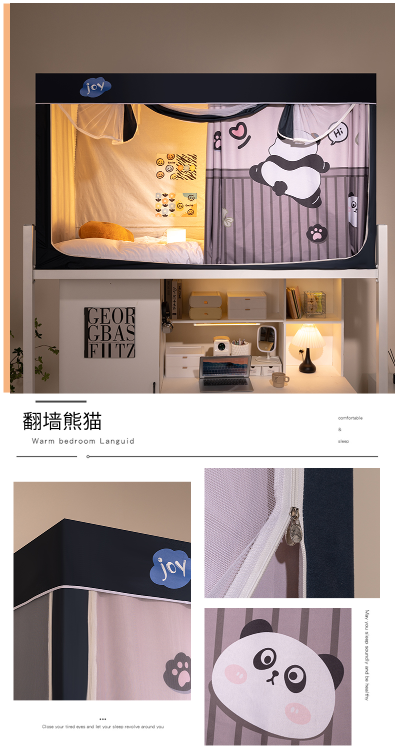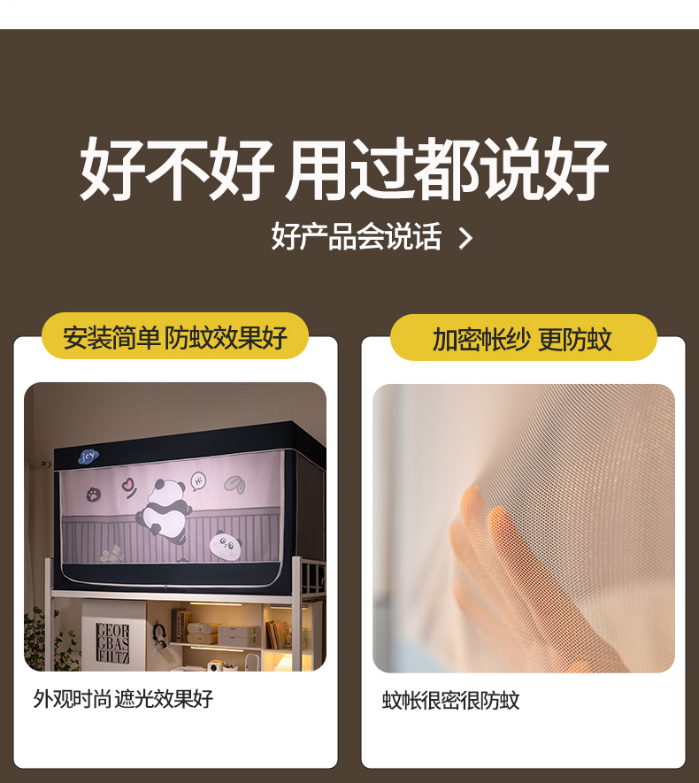 商品名称:新太阳蚊帐 2025新款涂层遮光防蚊款学生床帘 翻墙熊猫