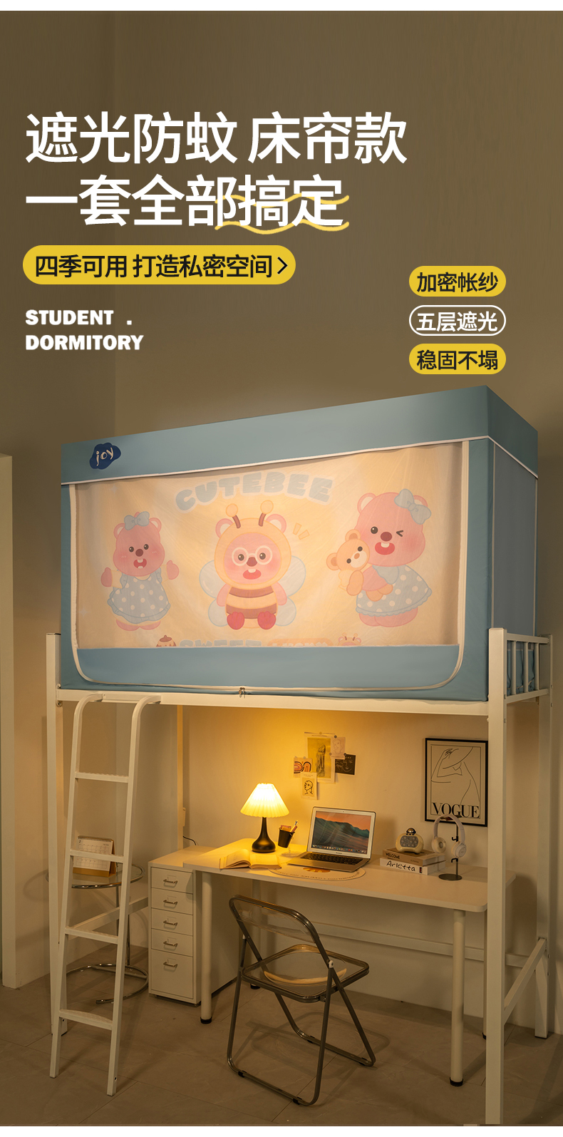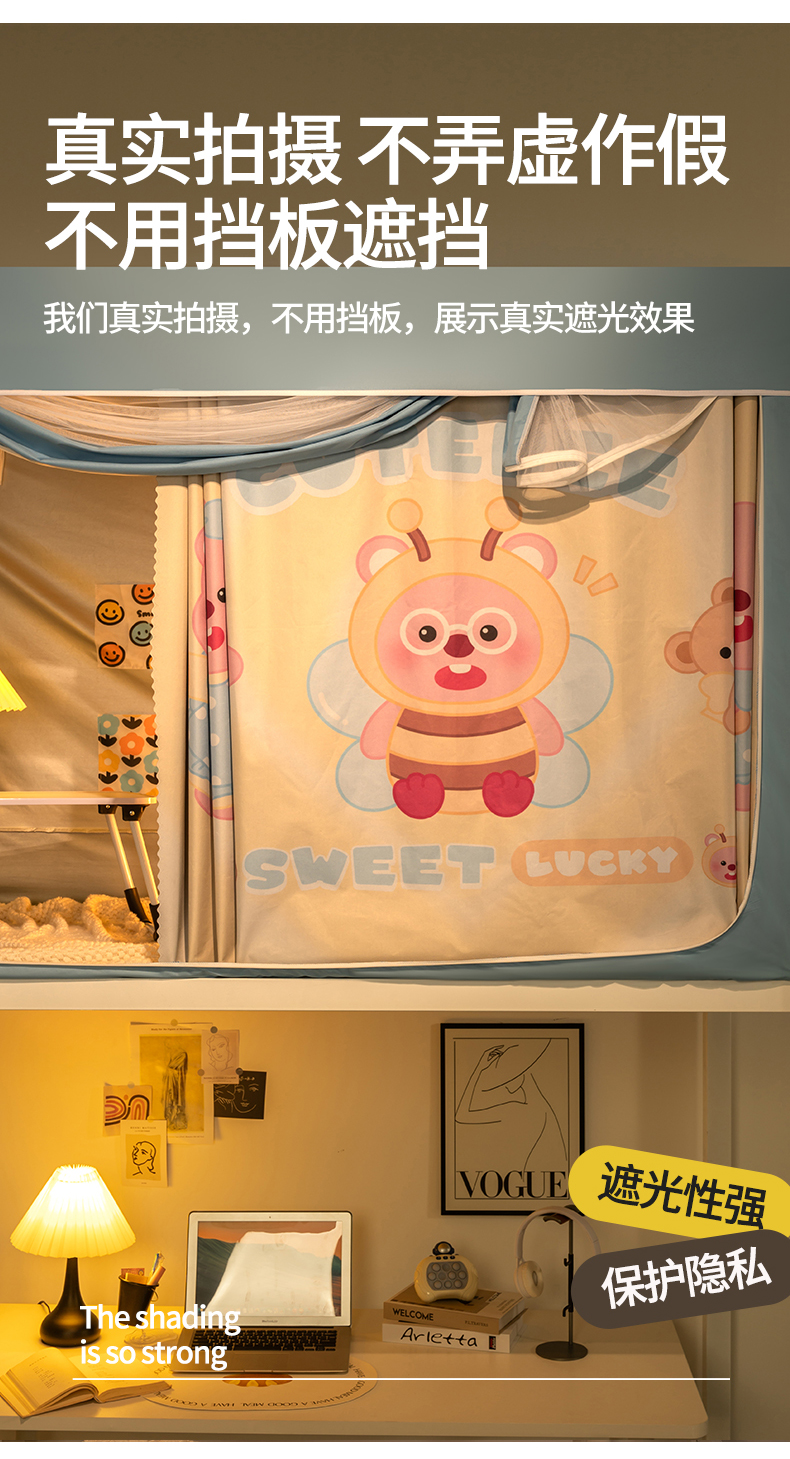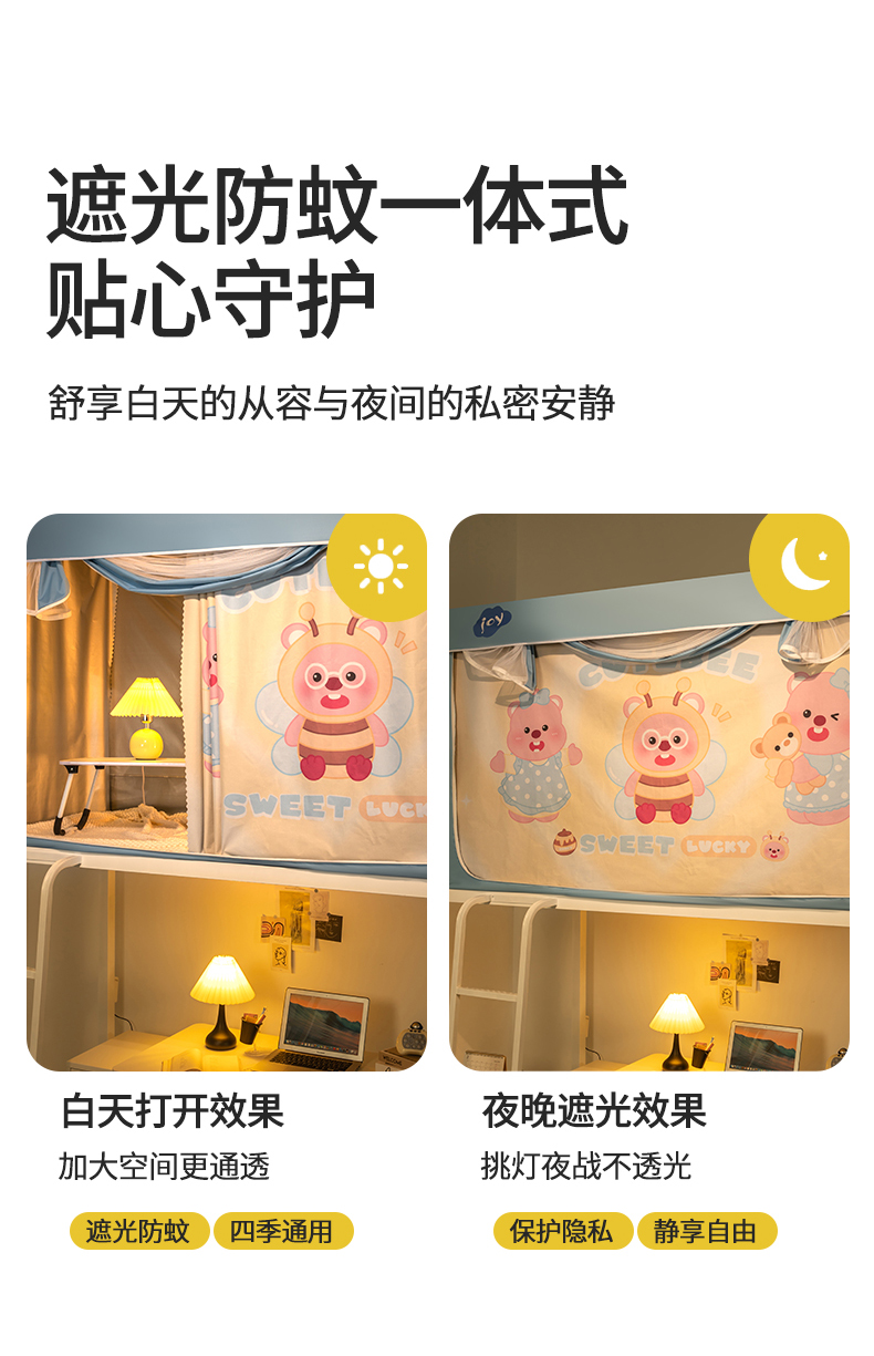 商品名称:新太阳蚊帐 2025新款涂层遮光防蚊款学生床帘 蜜蜂露比
