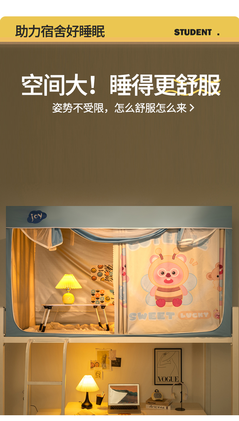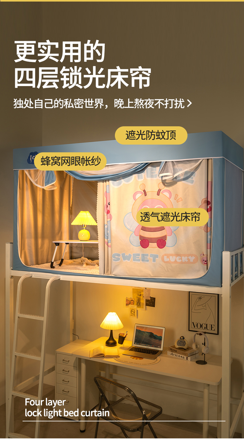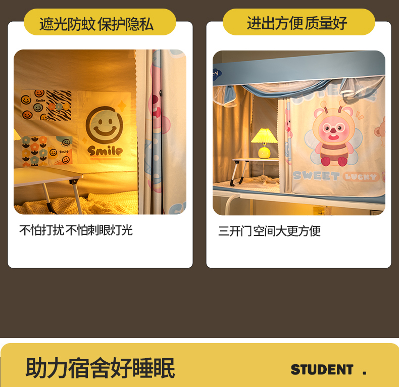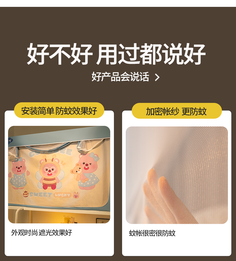 商品名称:新太阳蚊帐 2025新款涂层遮光防蚊款学生床帘 蜜蜂露比