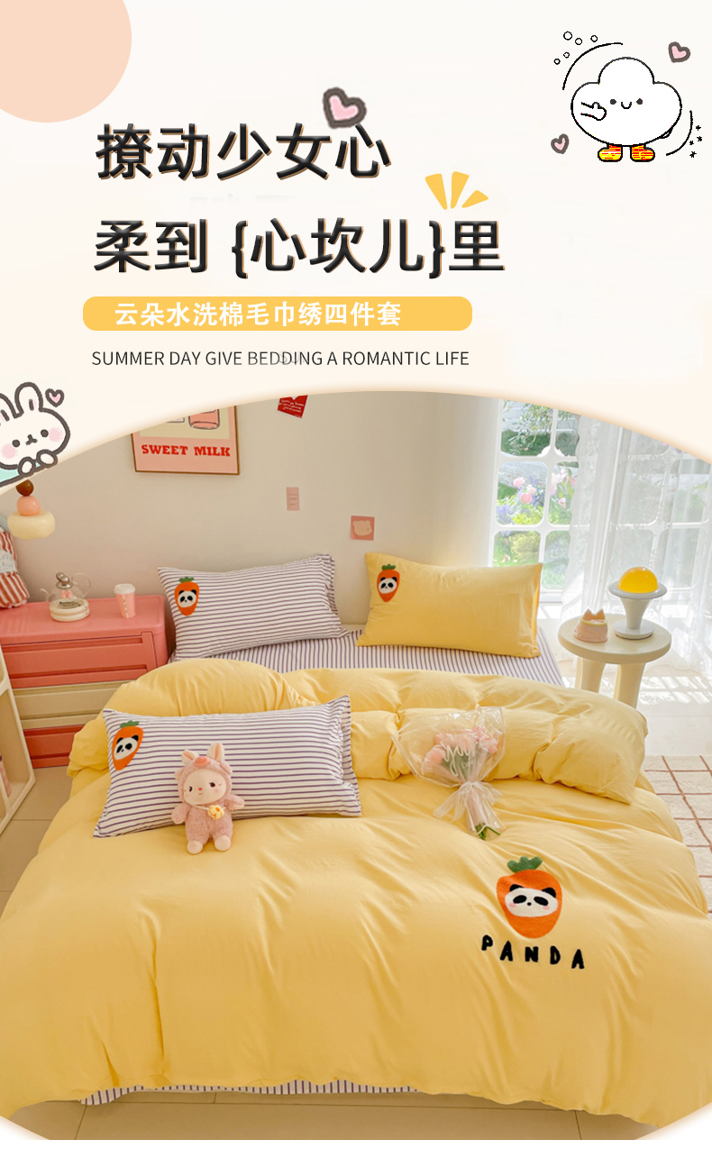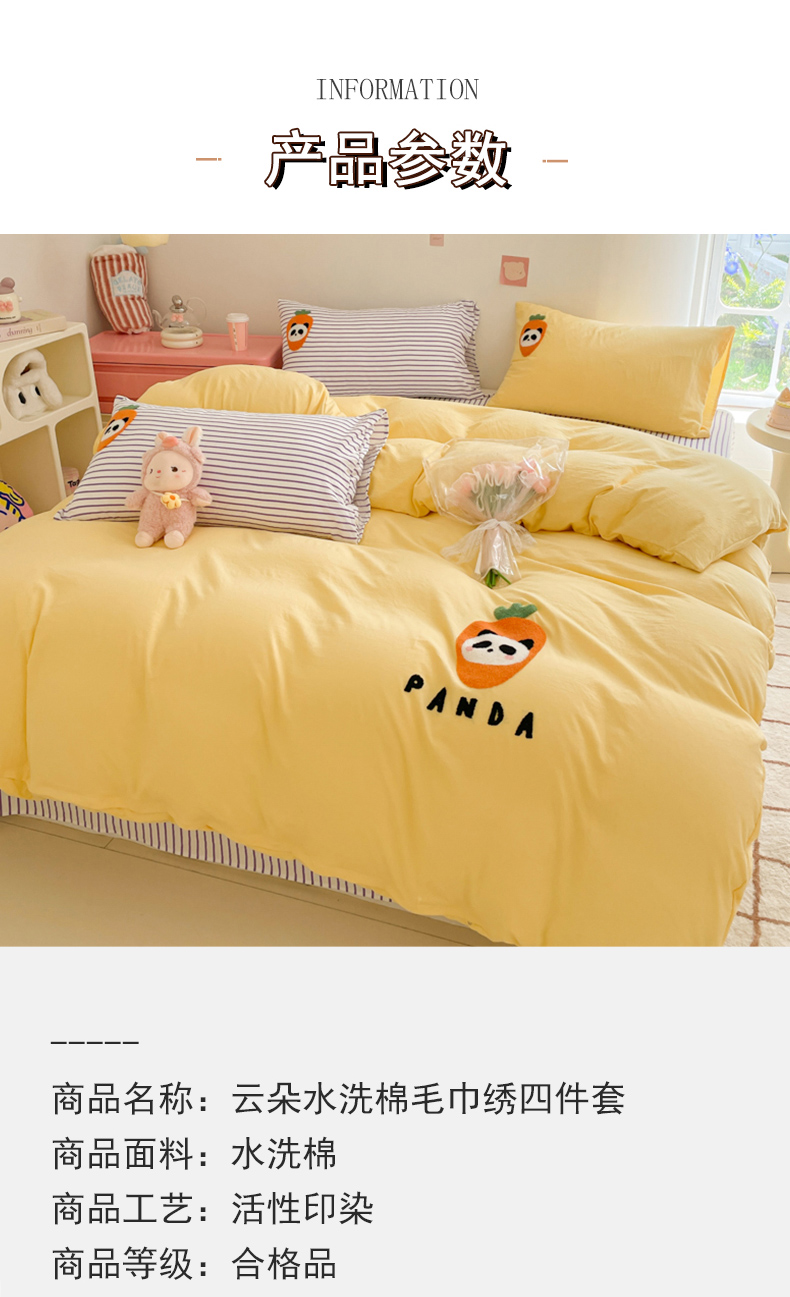 商品名称:葡萄家纺 2024款水果熊猫系列云朵水洗棉毛巾绣四件套第二批(提供买家秀) 香芋芝士-黄