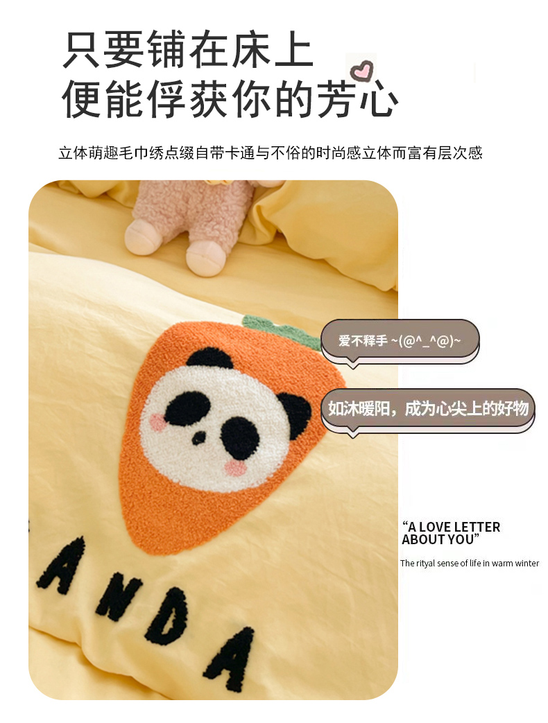 (总)葡萄家 2024新款卡通牛奶绒毛巾绣可爱熊猫保暖四件套提供买家秀,萌宝牛奶绒-粉,萌宝牛奶绒-黄,萌宝牛奶绒-灰,萌宝牛奶绒-咖,萌宝牛奶绒-蓝,萌宝牛奶绒-绿,萌宝牛奶绒-紫