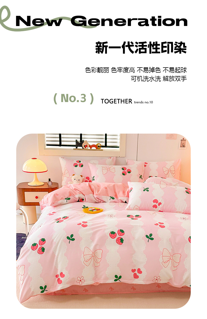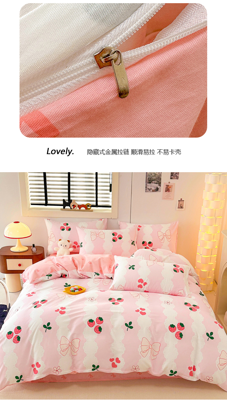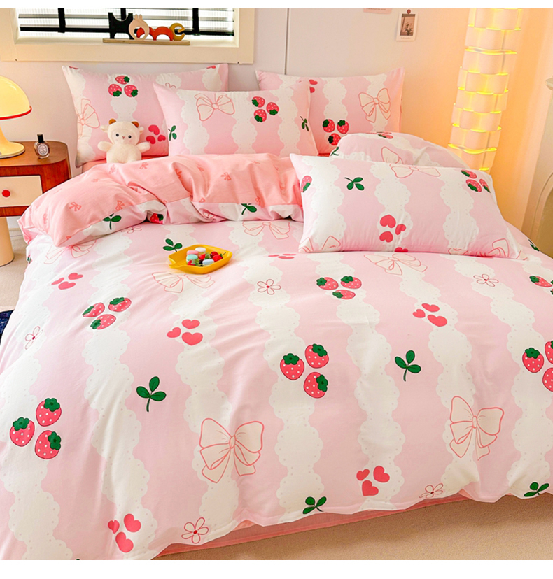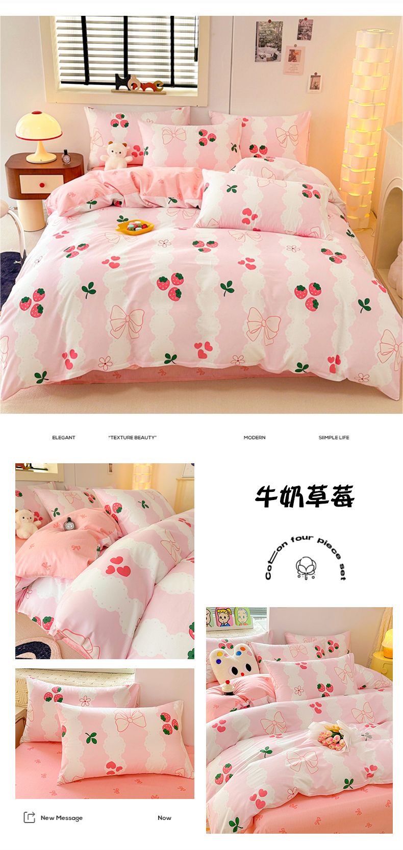 当前位置: 91家纺网 > 商品网购 > 床品套件 > 四件套 > 全棉普通四件套 > 寻米2024爆款ins风网红印花加厚小清新卡通纯棉全棉四件套-风格二 牛奶草莓