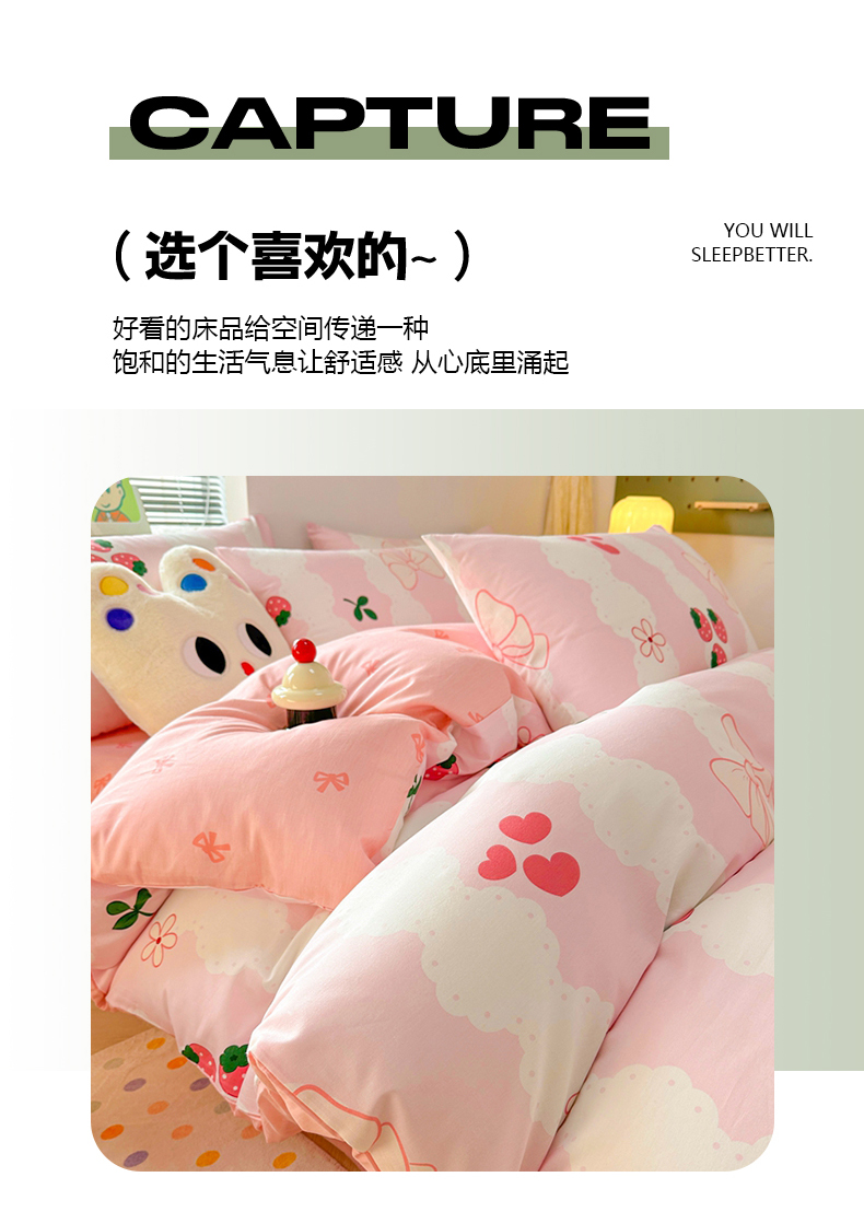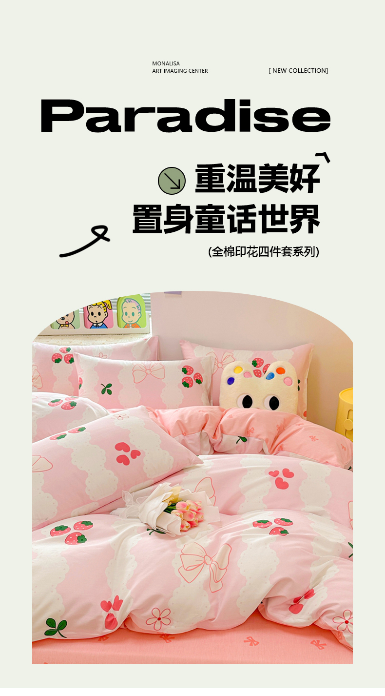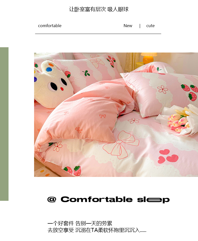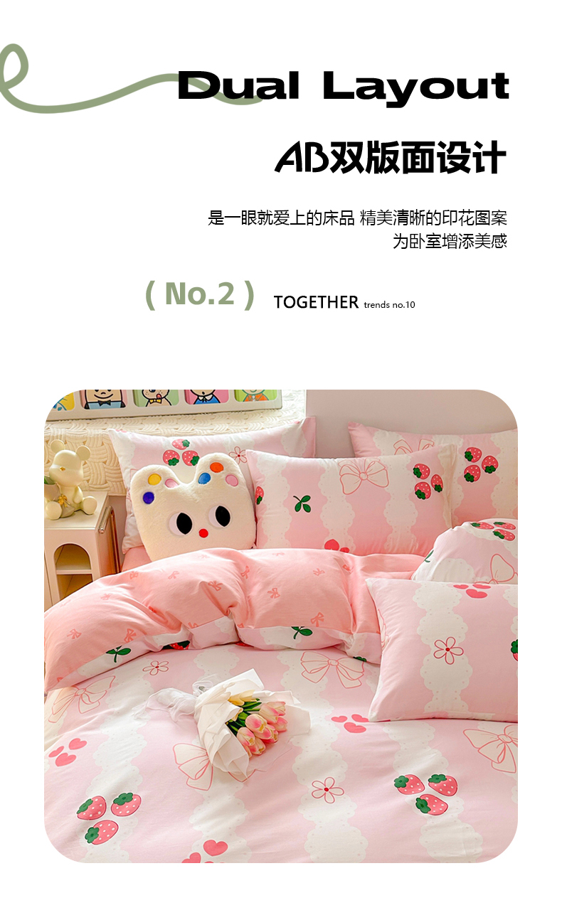 当前位置: 91家纺网 > 商品网购 > 床品套件 > 四件套 > 全棉普通四件套 > 寻米2024爆款ins风网红印花加厚小清新卡通纯棉全棉四件套-风格二 牛奶草莓