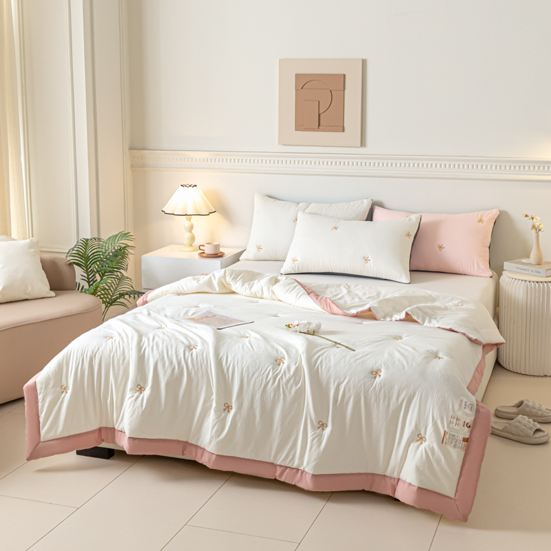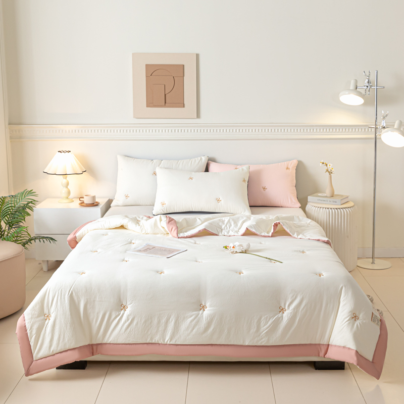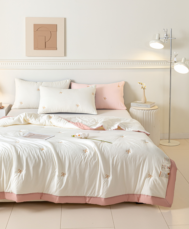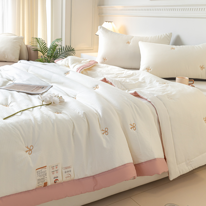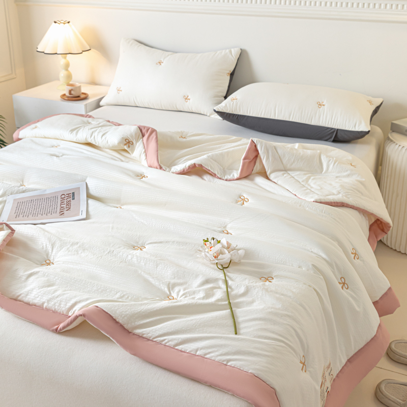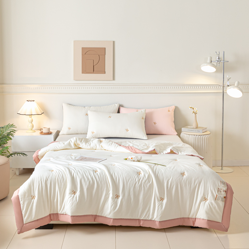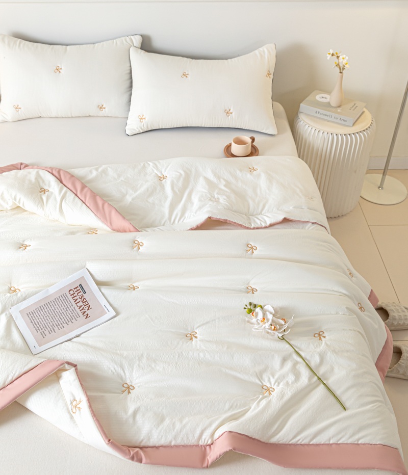 商品名称:梦初语 2024新款刺绣小竺棉大豆夏被 蝴蝶结-米