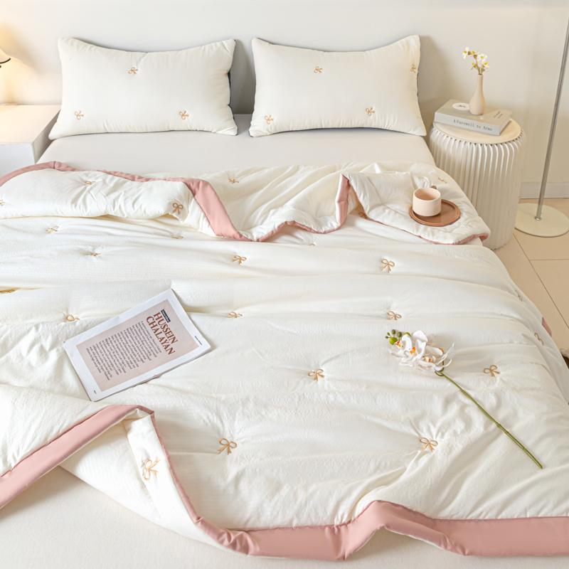 梦初语 2024新款刺绣小竺棉大豆夏被 蝴蝶结-米