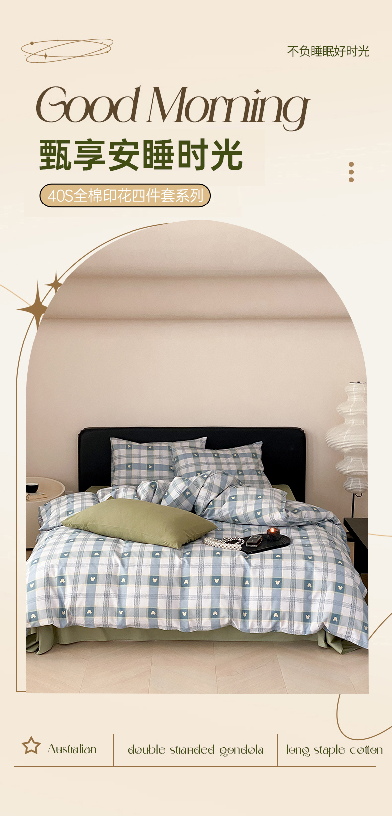 嘉汀兰家居 2024新款40s全棉印花四件套系列 小熊星座