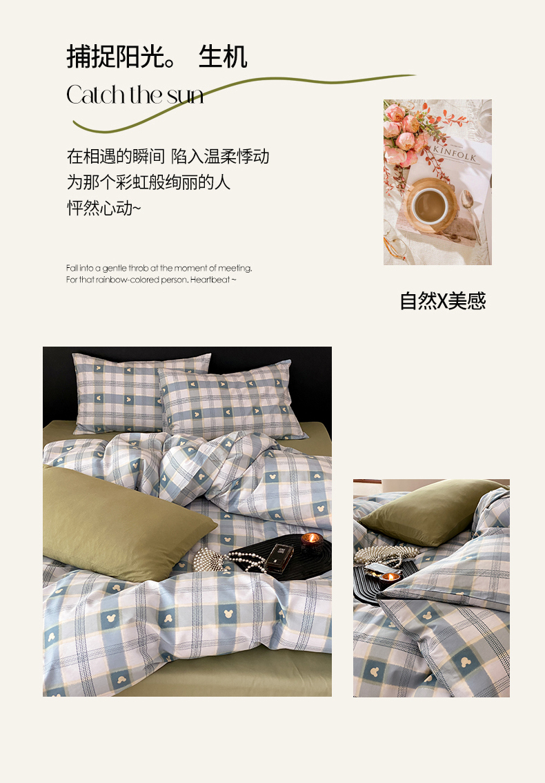 (总)嘉汀兰2025新款全棉臻品磨毛轻奢时尚秋冬加厚四件套-拼角款,浮生若梦,雾林-浅灰,星辰,杏花微雨,长相依-草绿