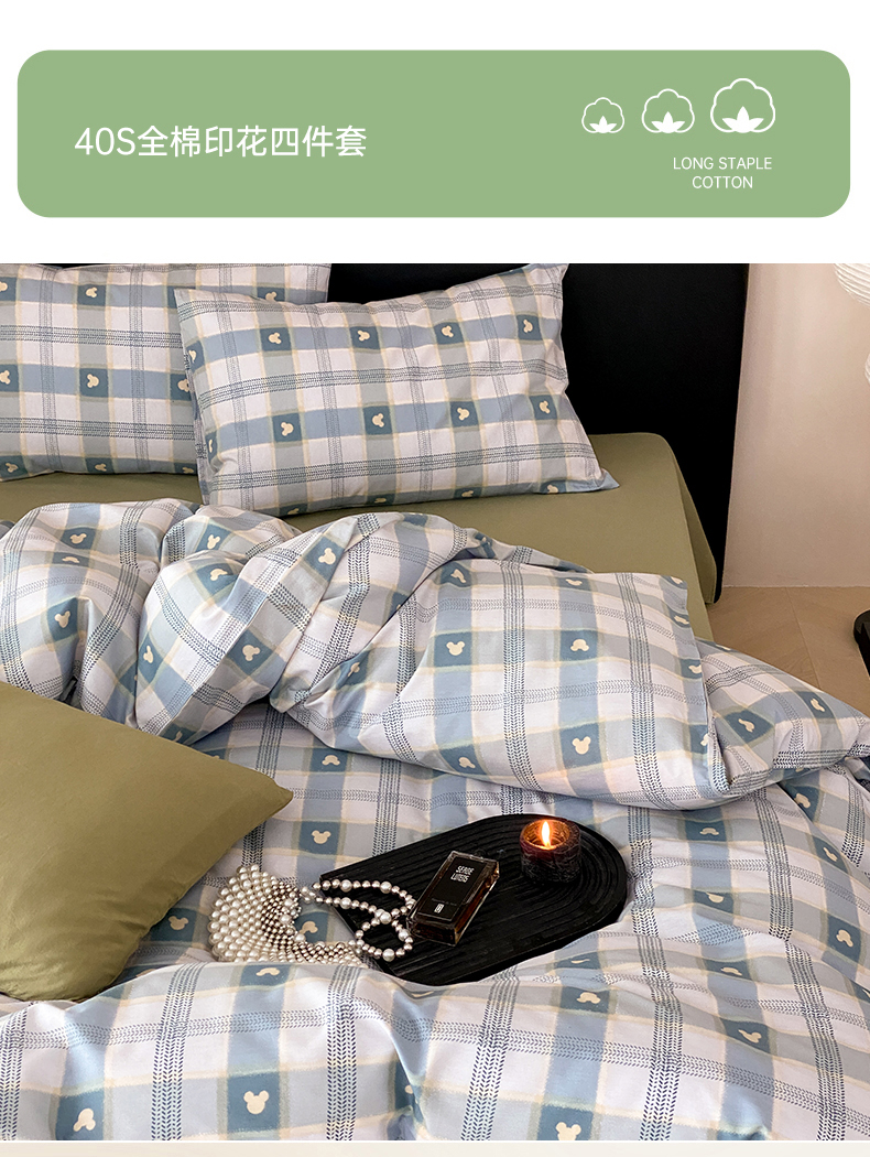 (总)嘉汀兰家居 2024新款100S长绒棉数码印花四件套系列,陌上花开-绿,纤羽-蓝