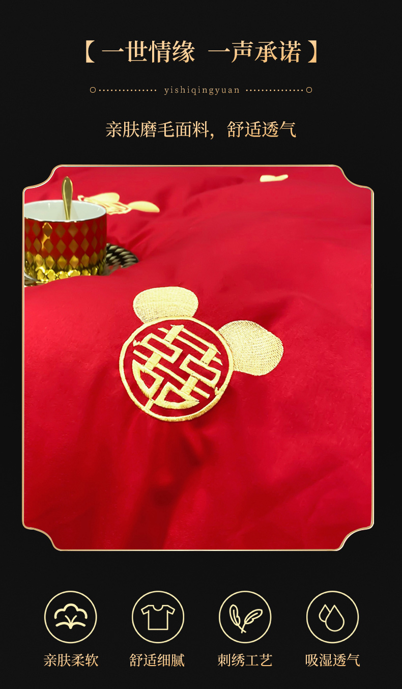 当前位置: 91家纺网 > 商品网购 > 床品套件 > 四件套 > 婚庆四件套 > 慕她家纺 2025新款磨毛婚庆四件套结婚刺绣花床品六喜庆 喜笑颜开