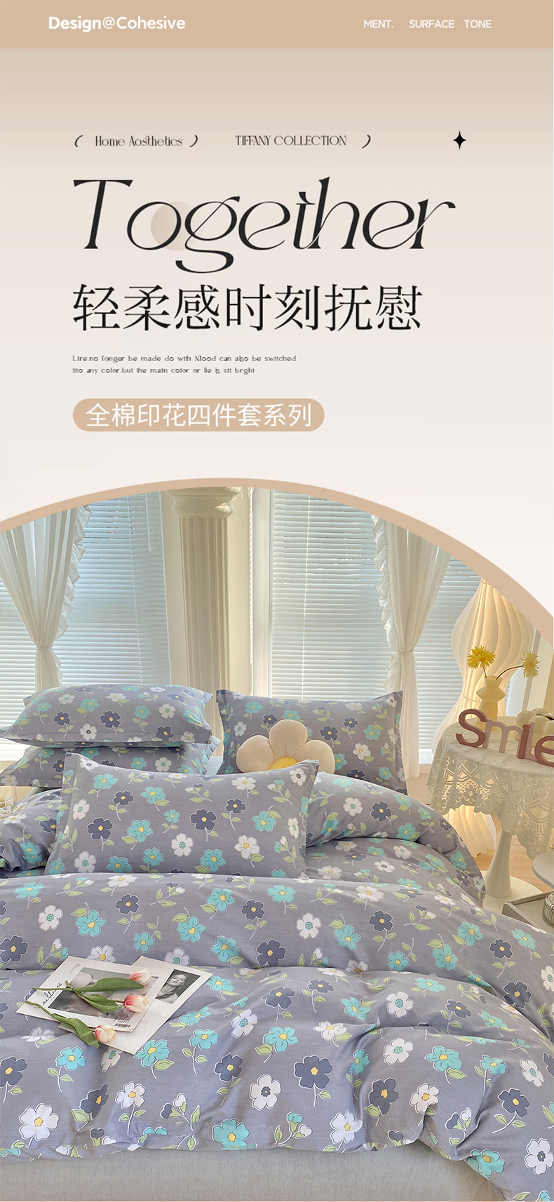 当前位置: 91家纺网 > 商品网购 > 床品套件 > 四件套 > 全棉普通四件套 > 珂博家纺 2024新款轻柔感全棉印花纯棉四件套 蓝色庄园