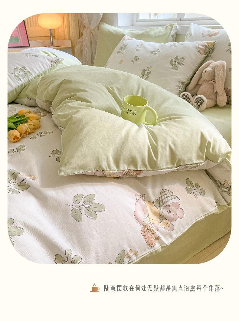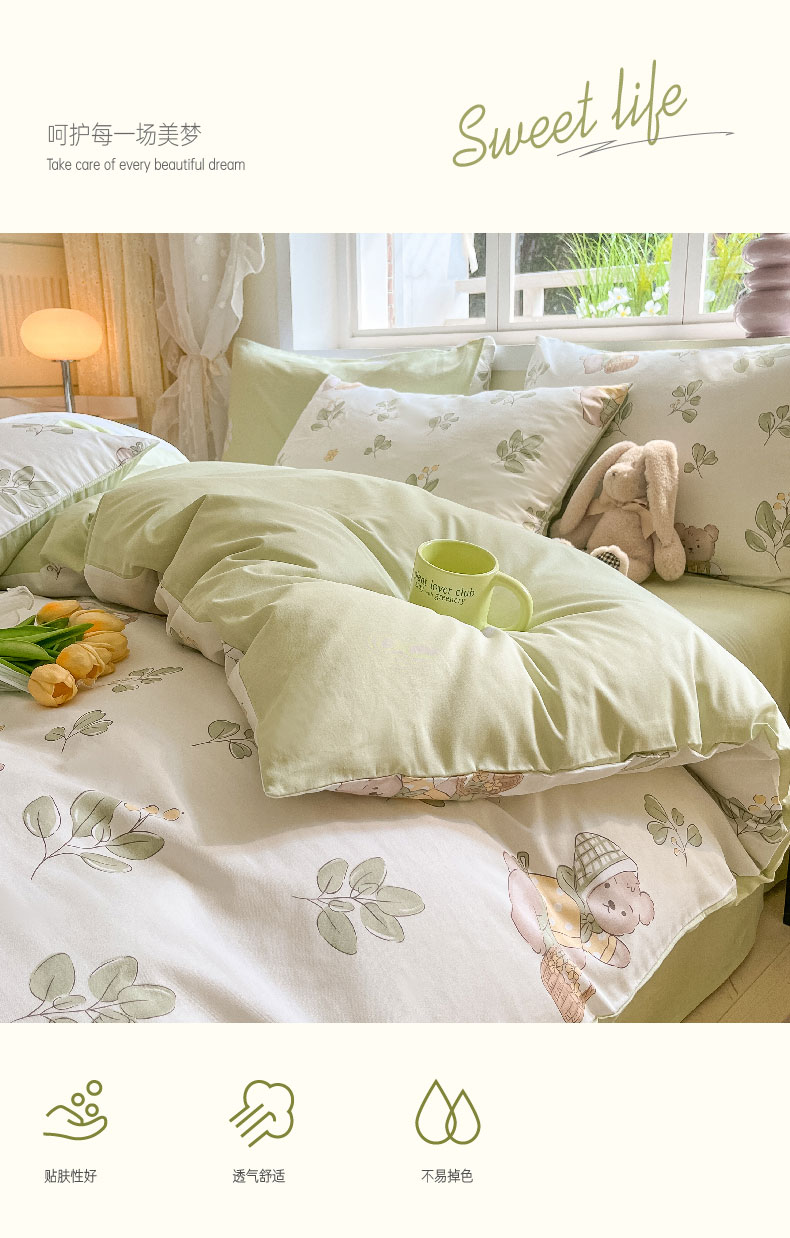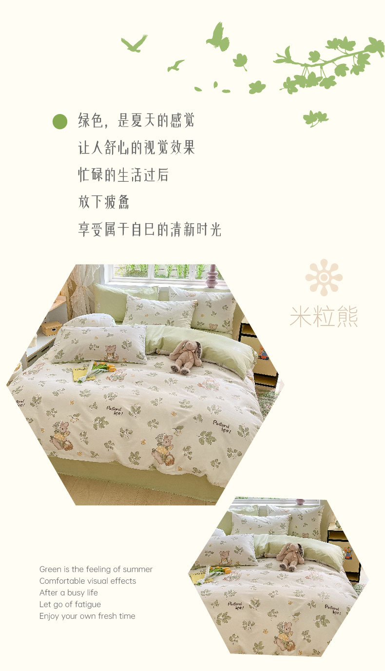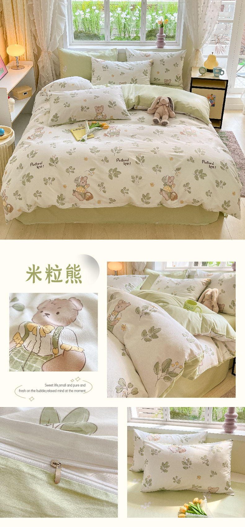 红馆 2025年全棉12868印花系列四件套米粒熊