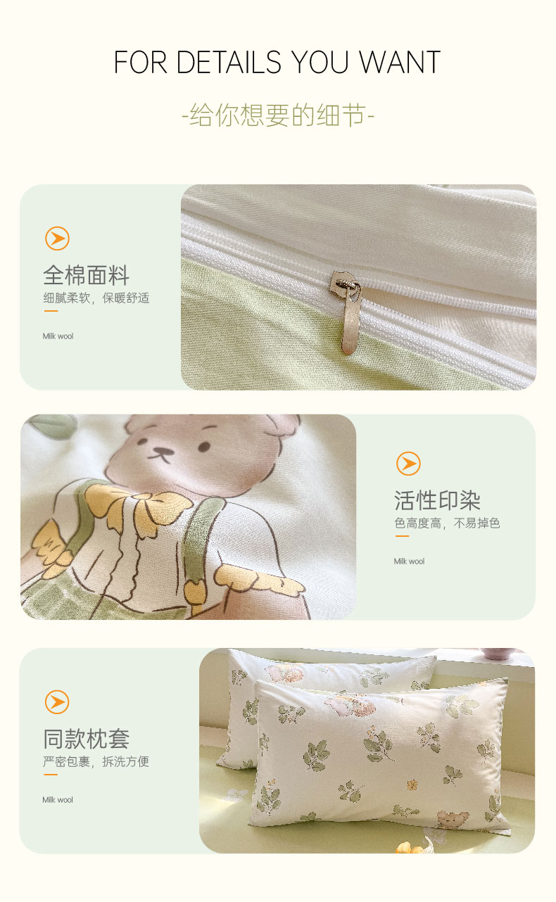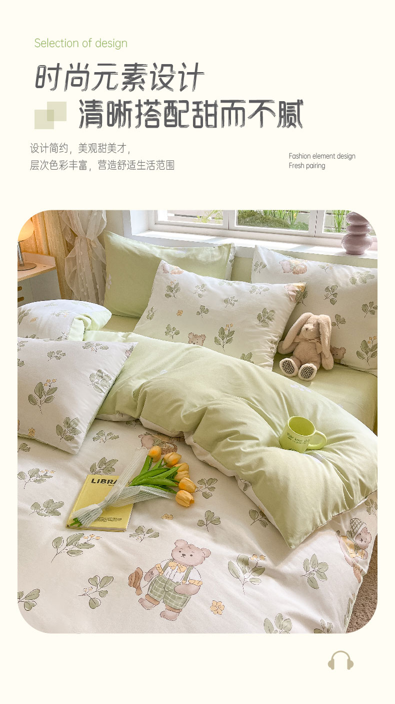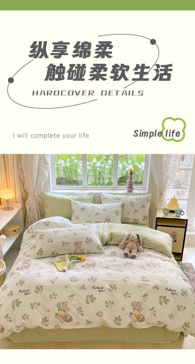 红馆 2025年全棉12868印花系列四件套米粒熊
