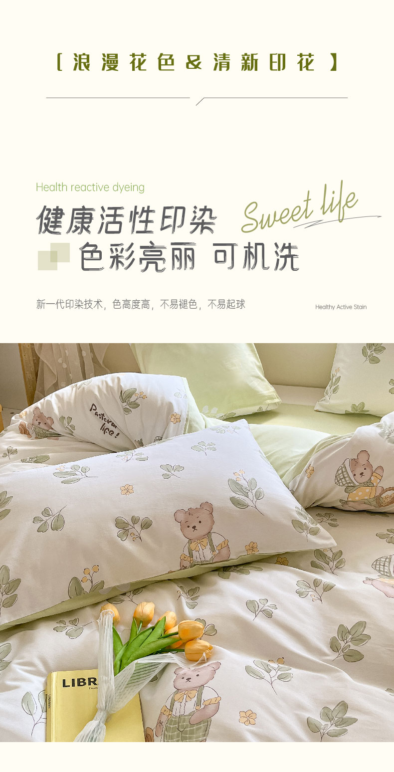 商品名称:红馆 2025年全棉12868印花系列四件套米粒熊