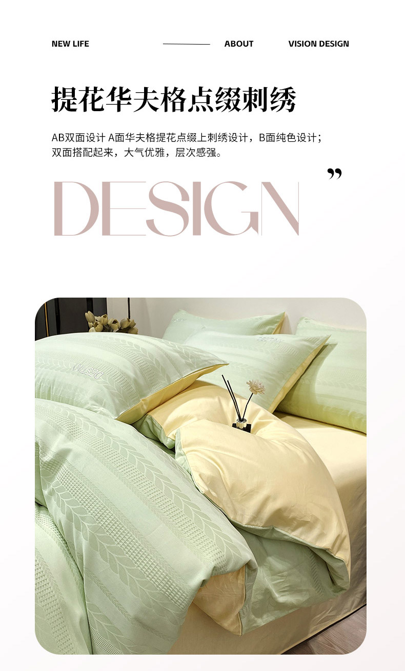 全棉华夫格提花四件套纯棉刺绣床上用品 麦穗-浅绿