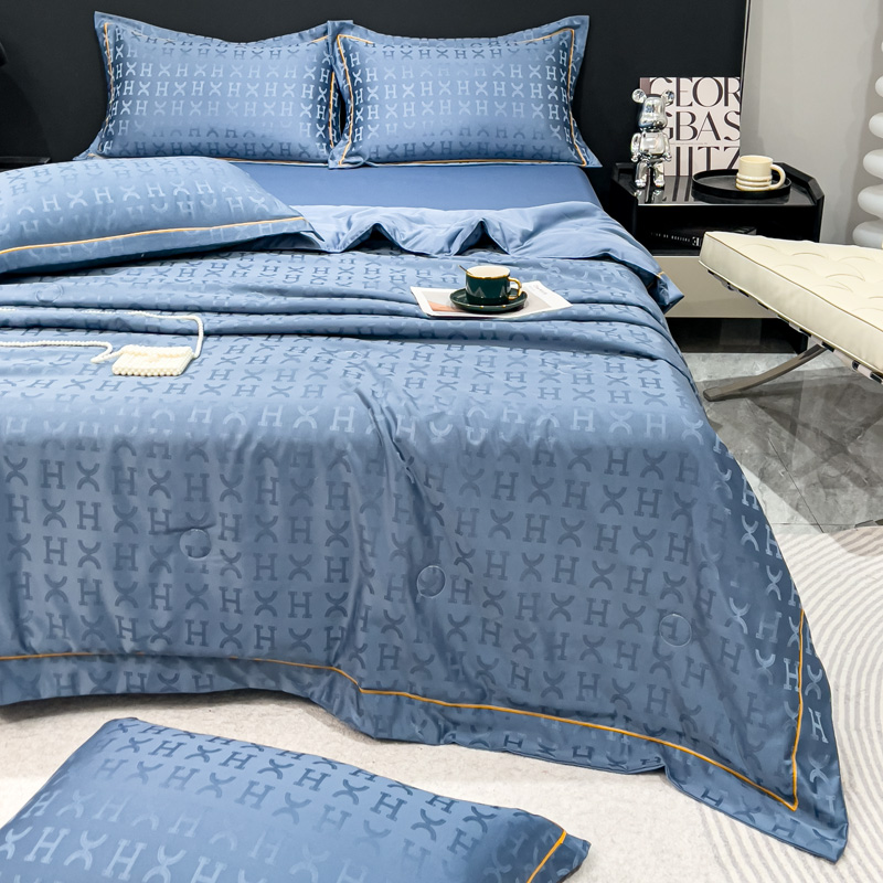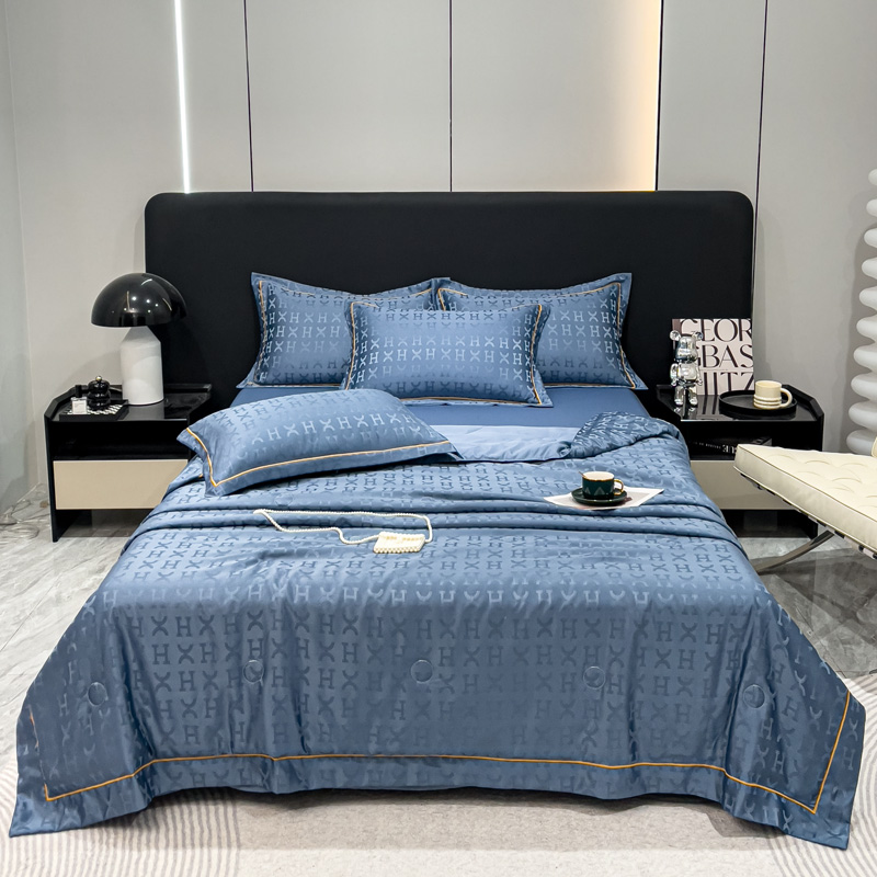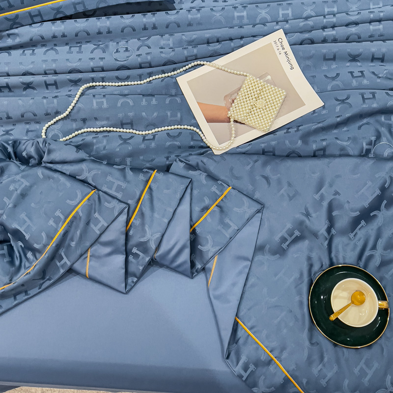 丽卡家纺 2024新款60s贡缎提花水洗天丝夏被四件套-莫奈 莫奈-宾利蓝